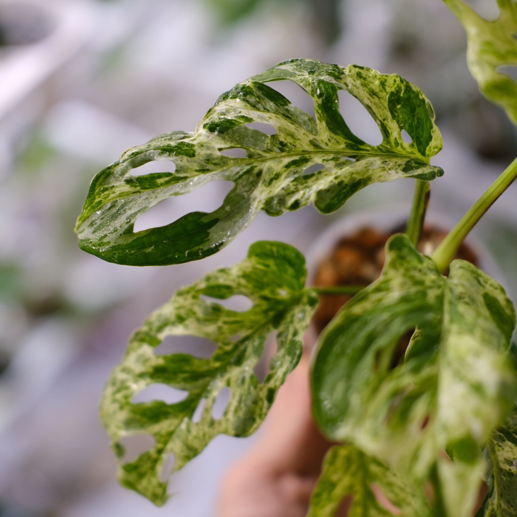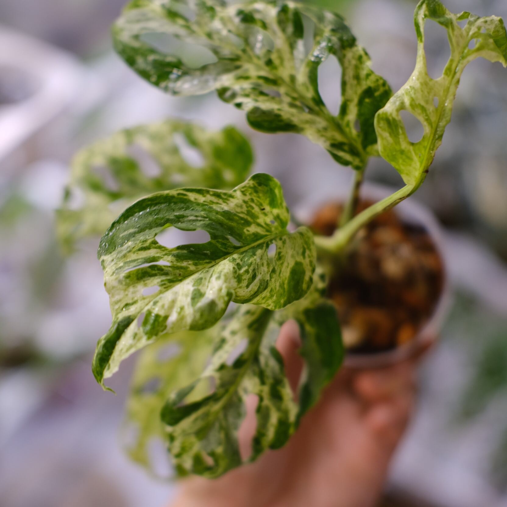 葉全体にミント斑がまだらに広がっている希少なモンステラ アダンソニーです。