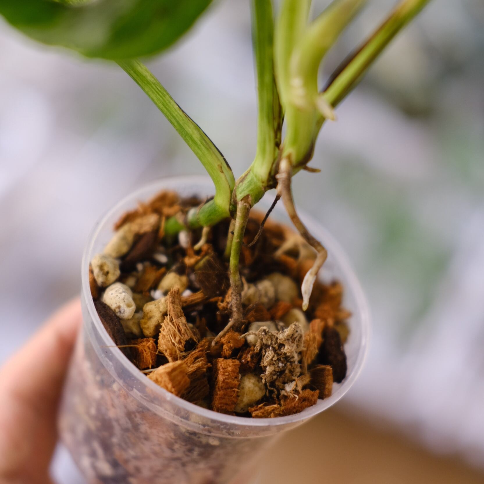 tokyoplantsのオンラインストアで販売している『I'm original SOIL』を基本用土としています。6種類の厳選素材を絶妙なバランスで配合した、地球にも根にも優しい天然有機物由来の培養土です。ココチップ、日向石、発酵樹皮、ミミズ堆肥 などをブレンドしており、アンスリウムやモンステラなどの熱帯植物を健康に大きく育てることができます。