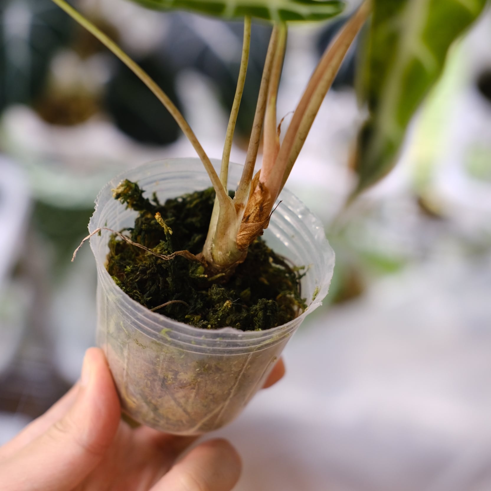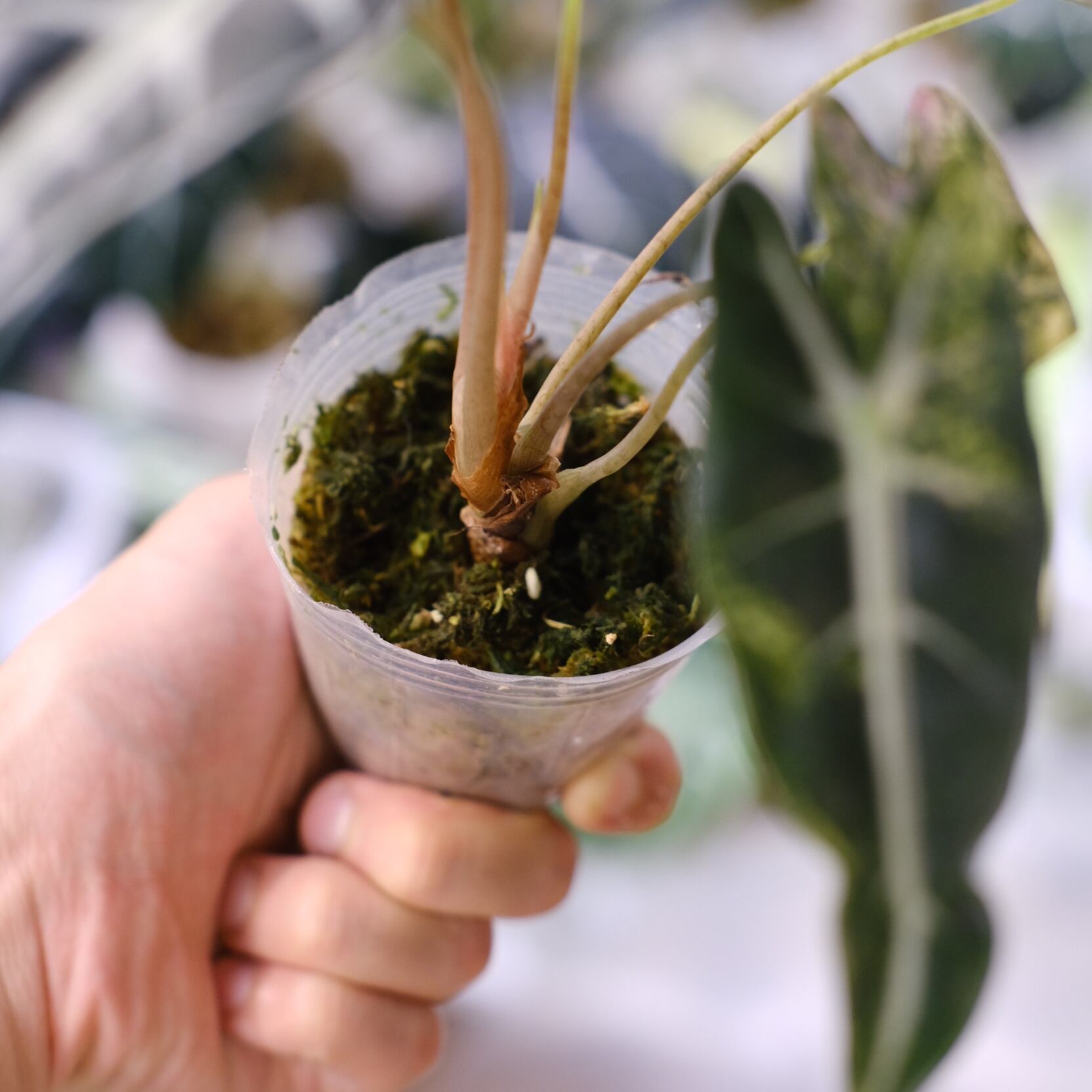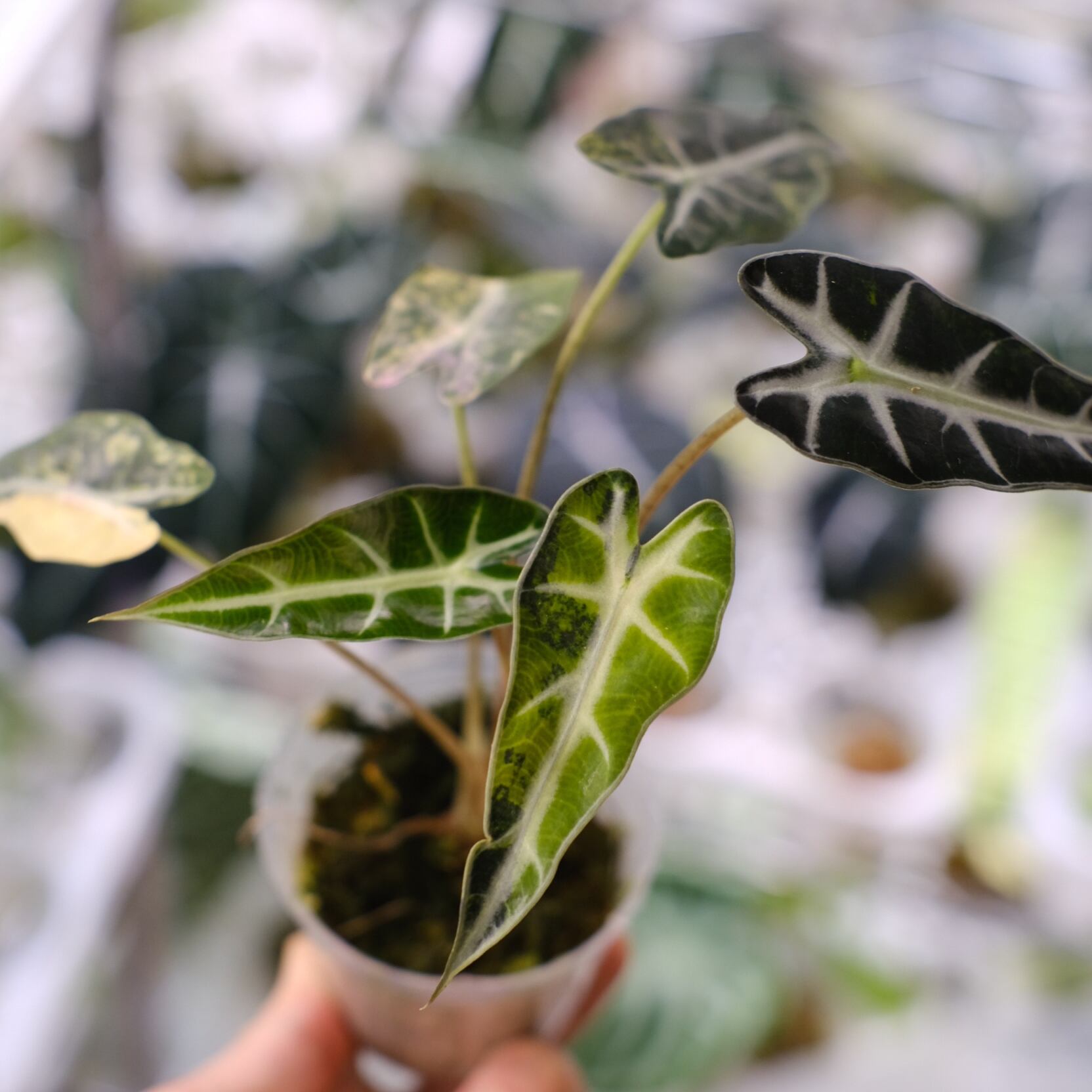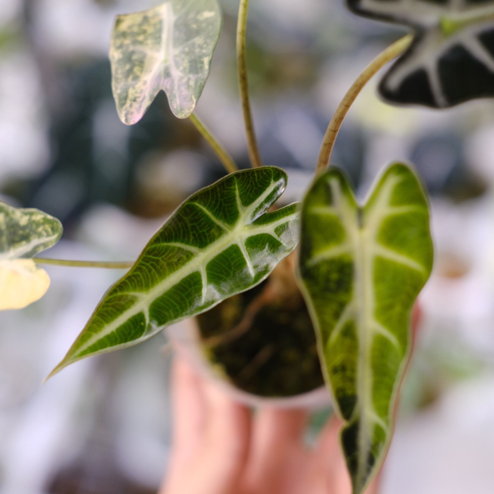 様々なレア品種が存在するアロカシアの中でも特に希少な斑入りの"アロカシア バンビーノ イエロー" です。 大きく育つと黄色の斑がより浮き立ち、高級感漂う見た目に育ちます。