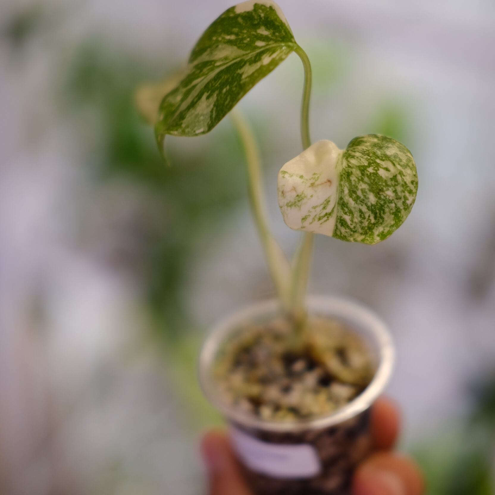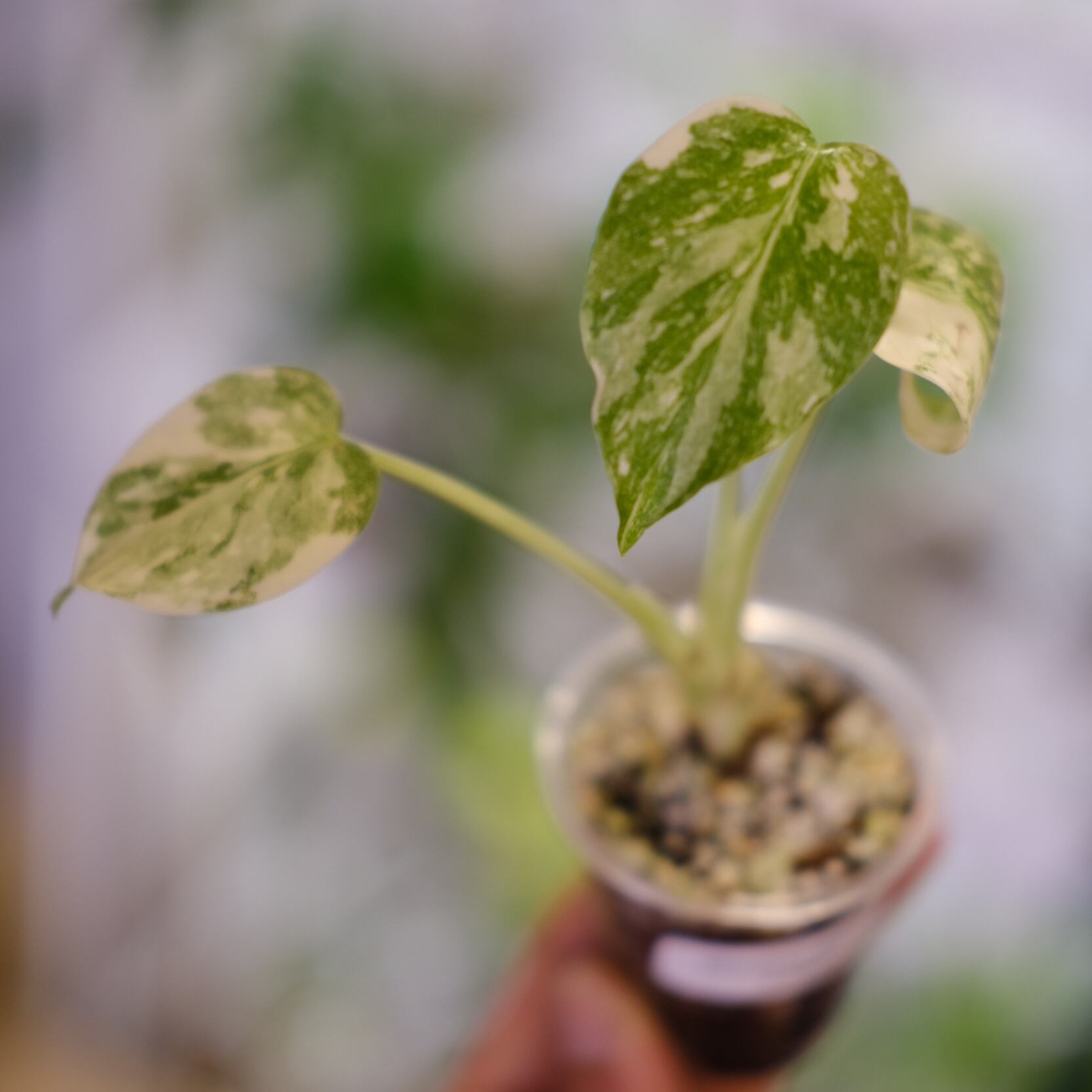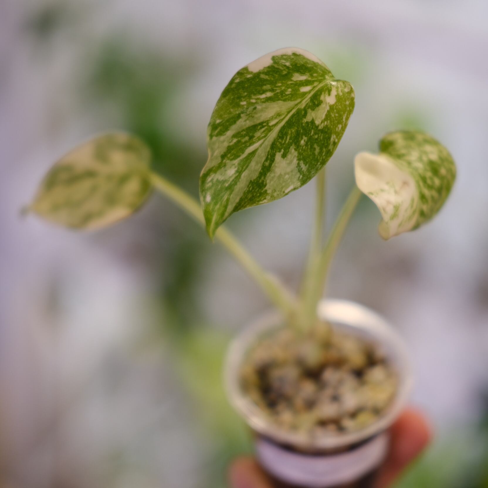 タイのナーセリーで、より安定して大胆かつマーブル調の斑が出るモンステラ・レガシーを選抜し組織培養化した株であり、順化後2ヶ月ほど経過しております。