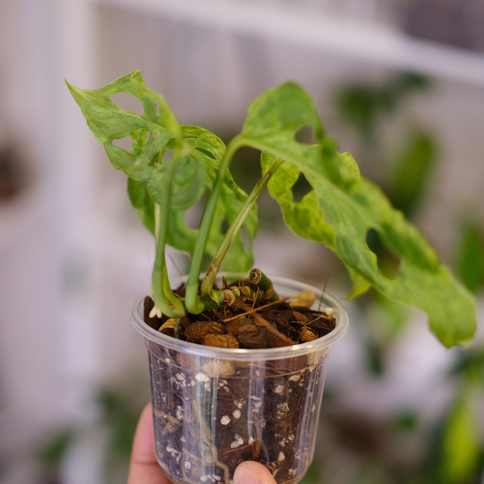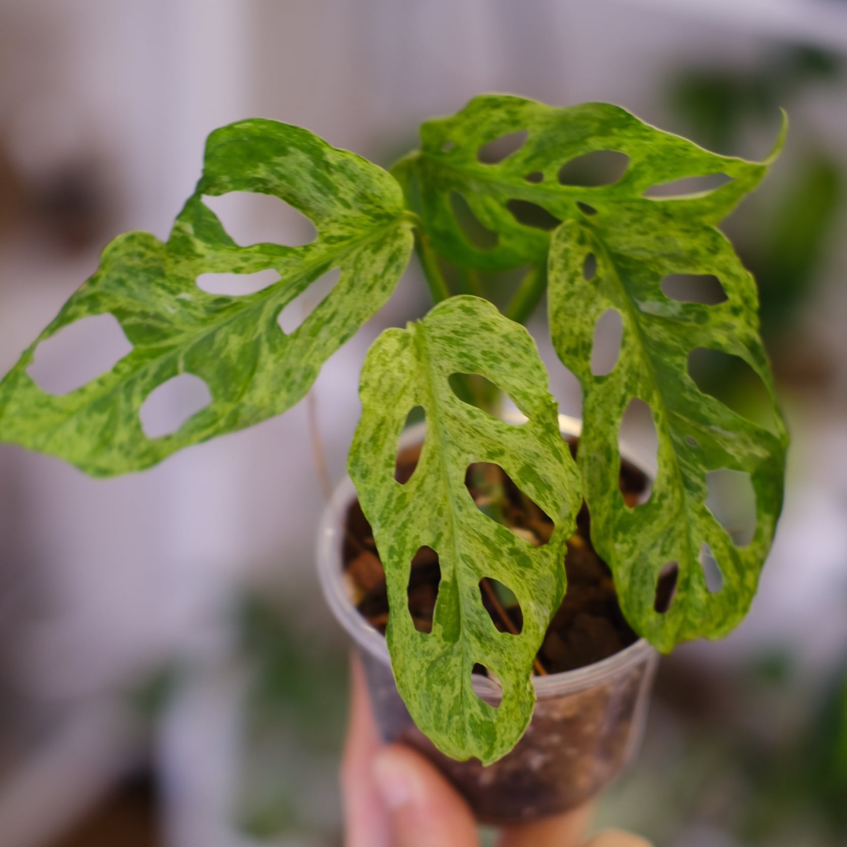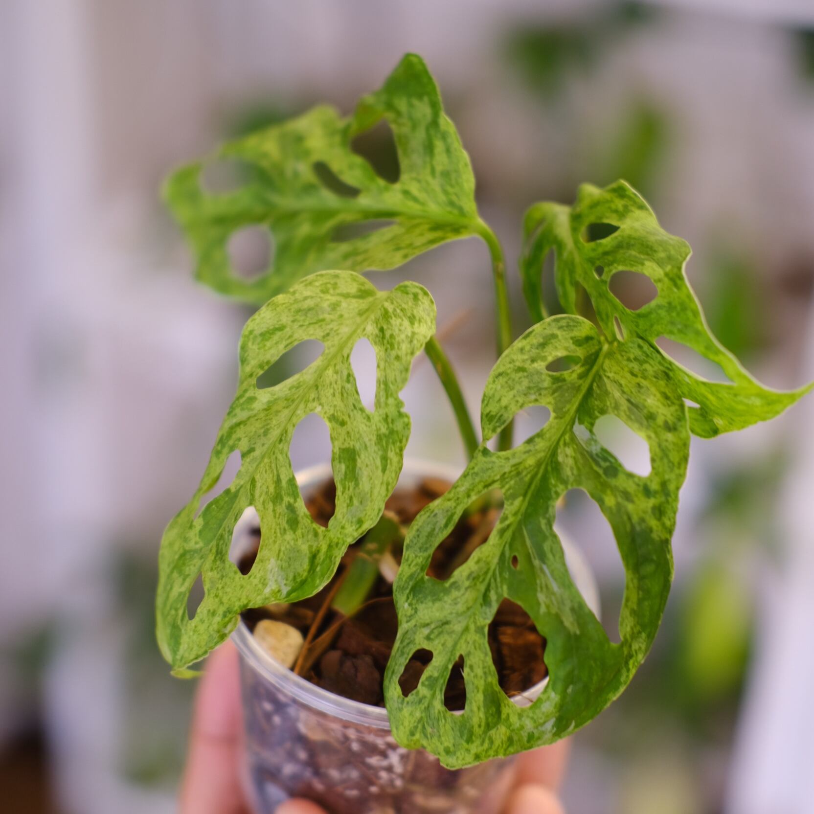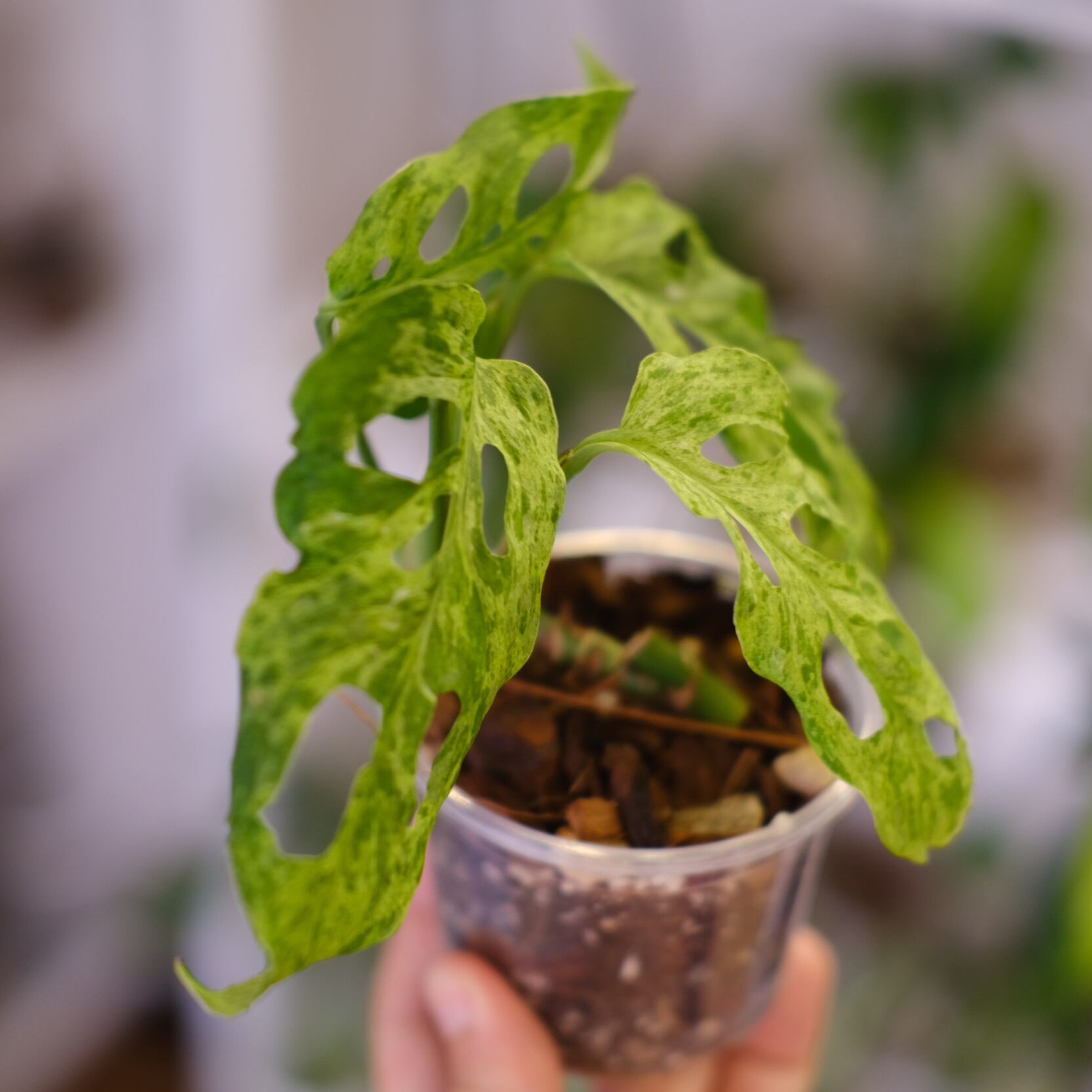 葉全体にミント斑がまだらに広がっている希少なモンステラ アダンソニーです。