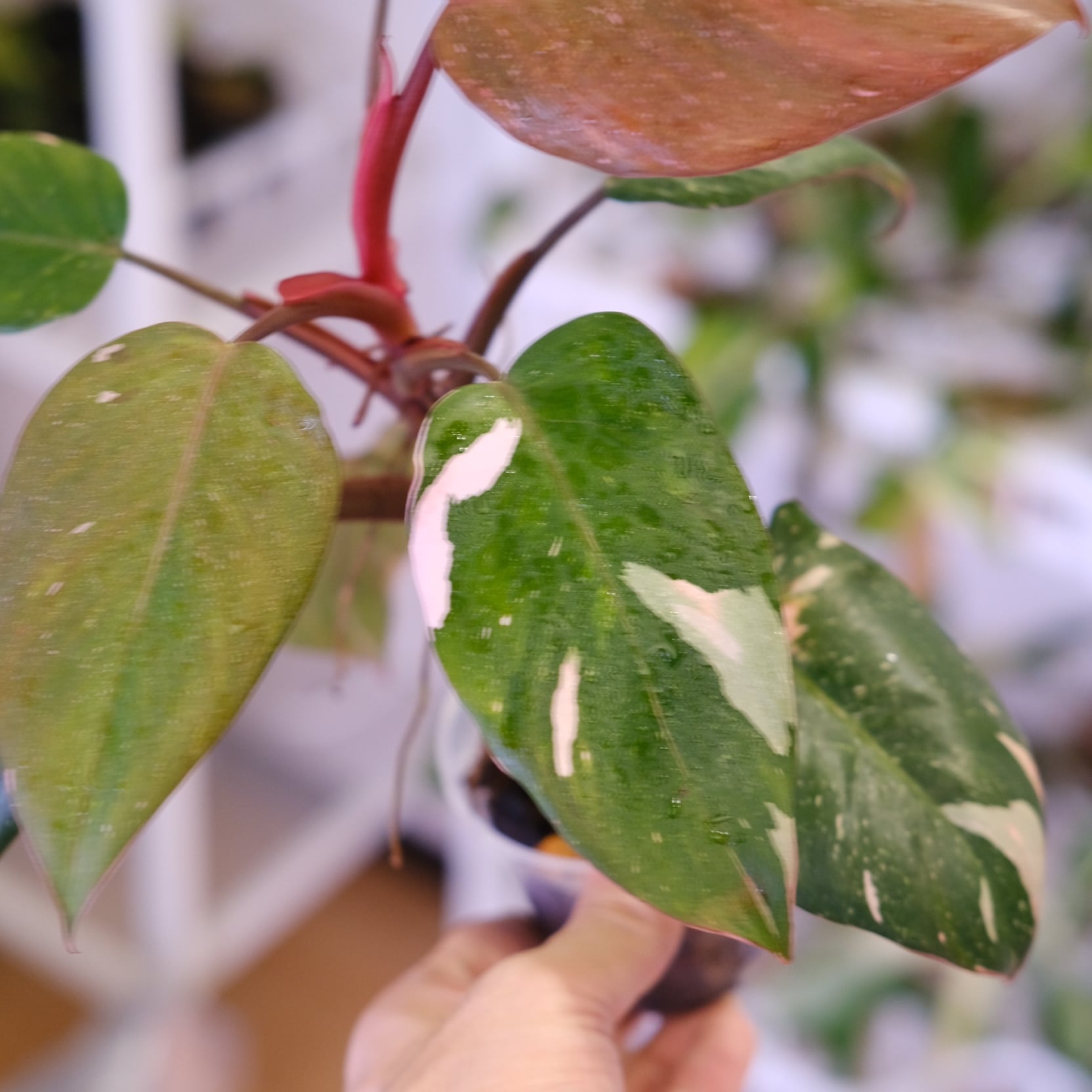 ピンク色の斑が美しいフィロデンドロン、Philodendron Pink Princess Marble Galaxy 。ピンクプリンセスの中でもマーブルギャラクシーは特に希少で、葉の斑がマーブル状になり、ピンク、白、緑のコントラストが非常に美しい品種です。