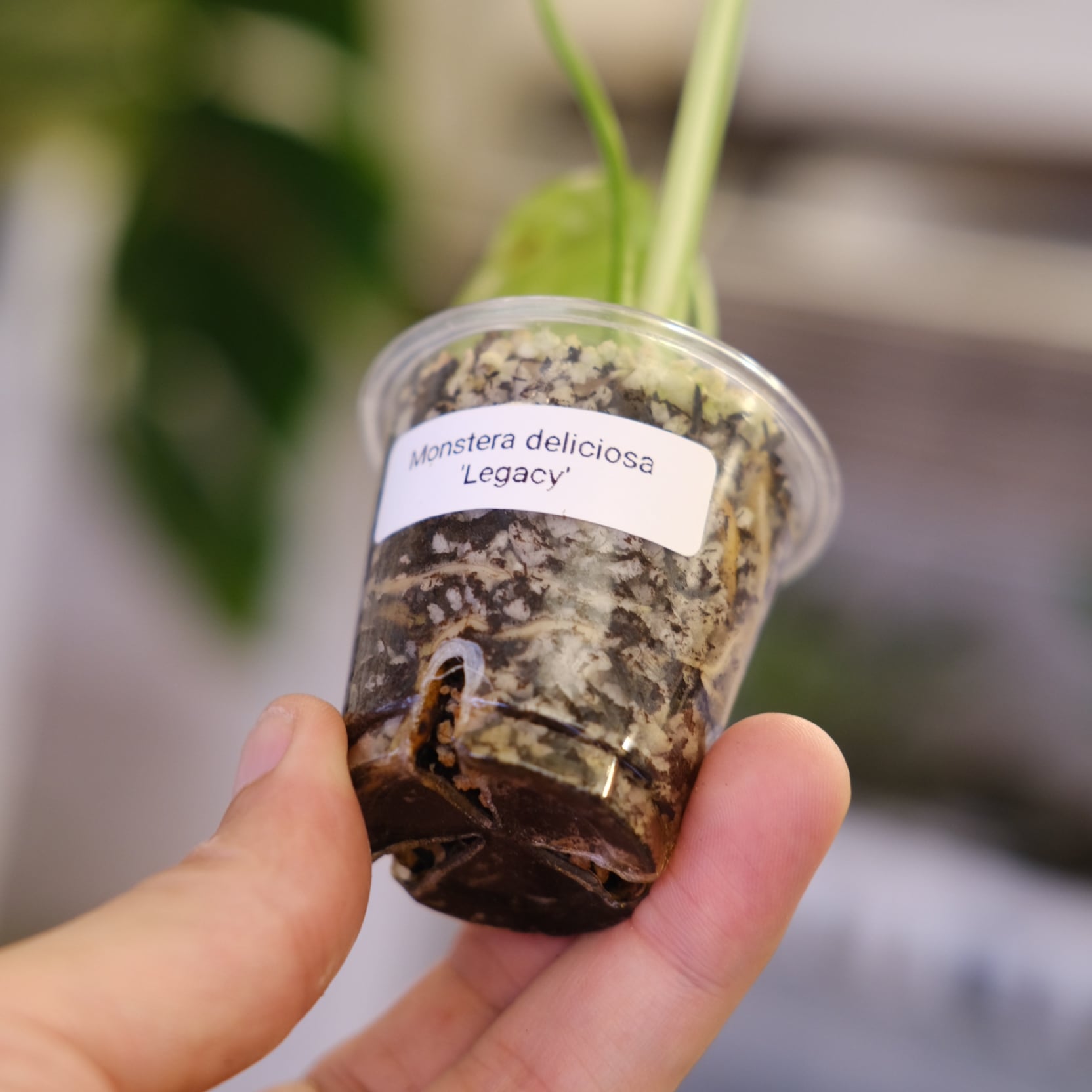 タイのナーセリーで、より安定して大胆かつマーブル調の斑が出るモンステラ・レガシーを選抜し組織培養化した株であり、順化後2ヶ月ほど経過しております。