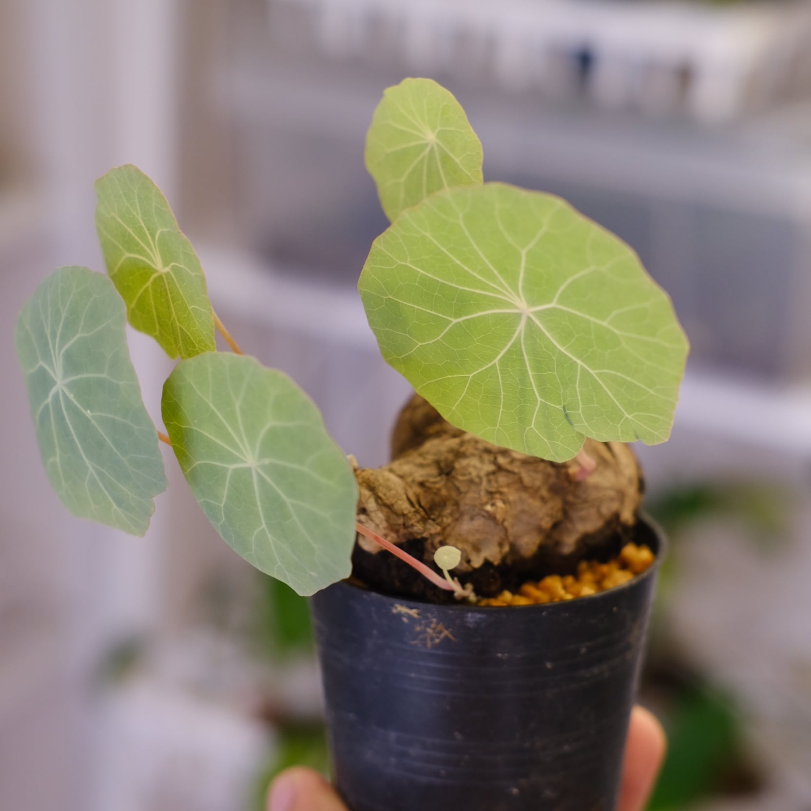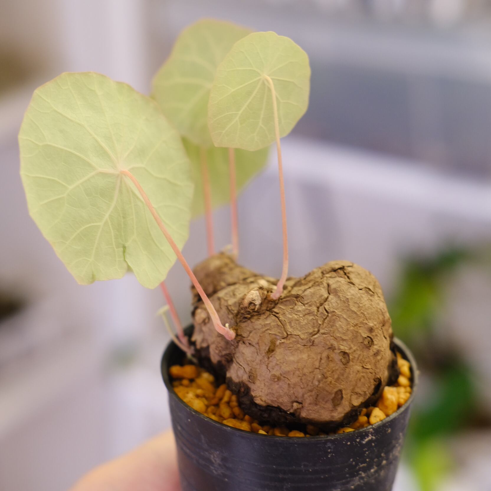 暖かく風通しの良い環境を好みます。水やりは他の塊根植物と同様に土の表面が乾いたらたっぷりとあげてください。冬は落葉しますが、また春になると新しい葉が展開するため毎年違った表情を楽しめます。(20℃を下回らなければ1年を通して新芽を展開してくれますよ)