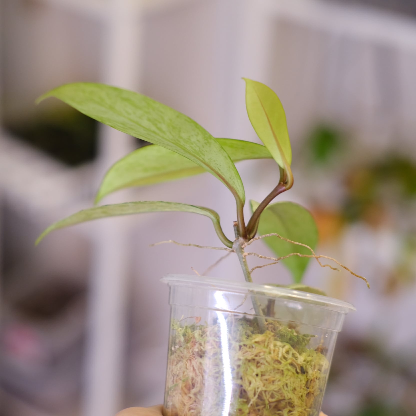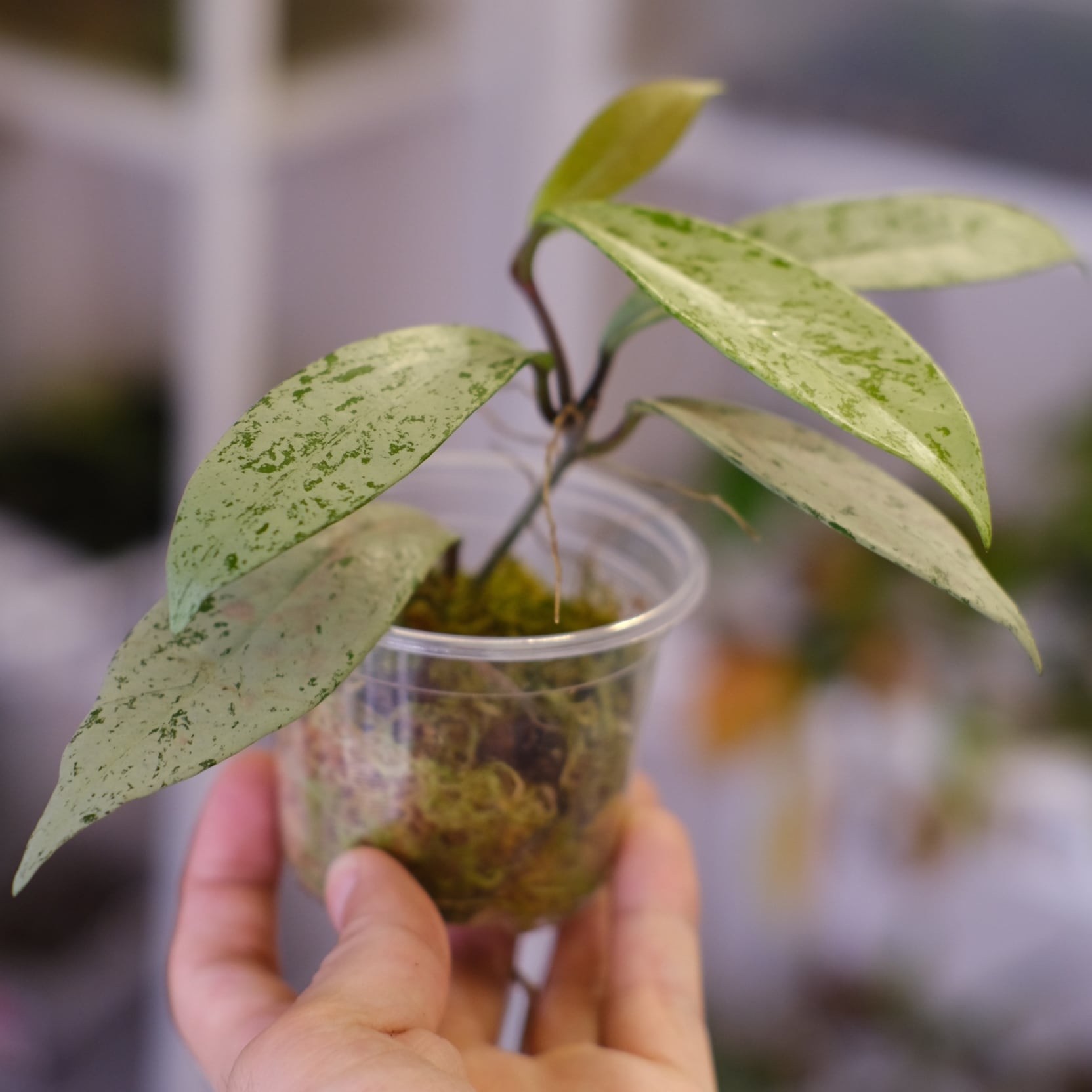 鉢は成長した植物の根を観察できるプラスチック鉢となり、ホヤの生育に適した【水苔】を用土としています。