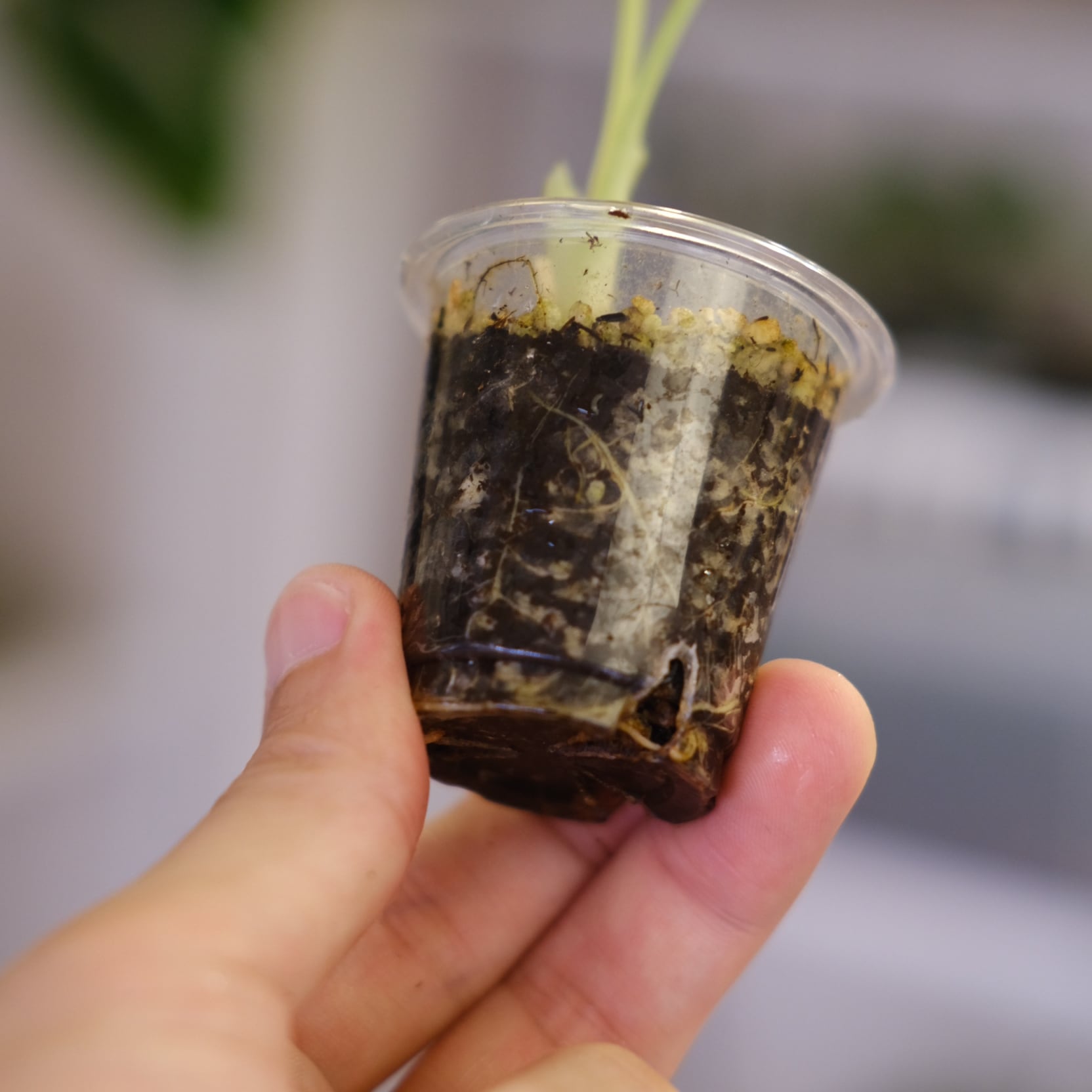 鉢は成長した植物の根を観察できるプラスチック鉢となり、生育に適した【水苔】を用土としています。