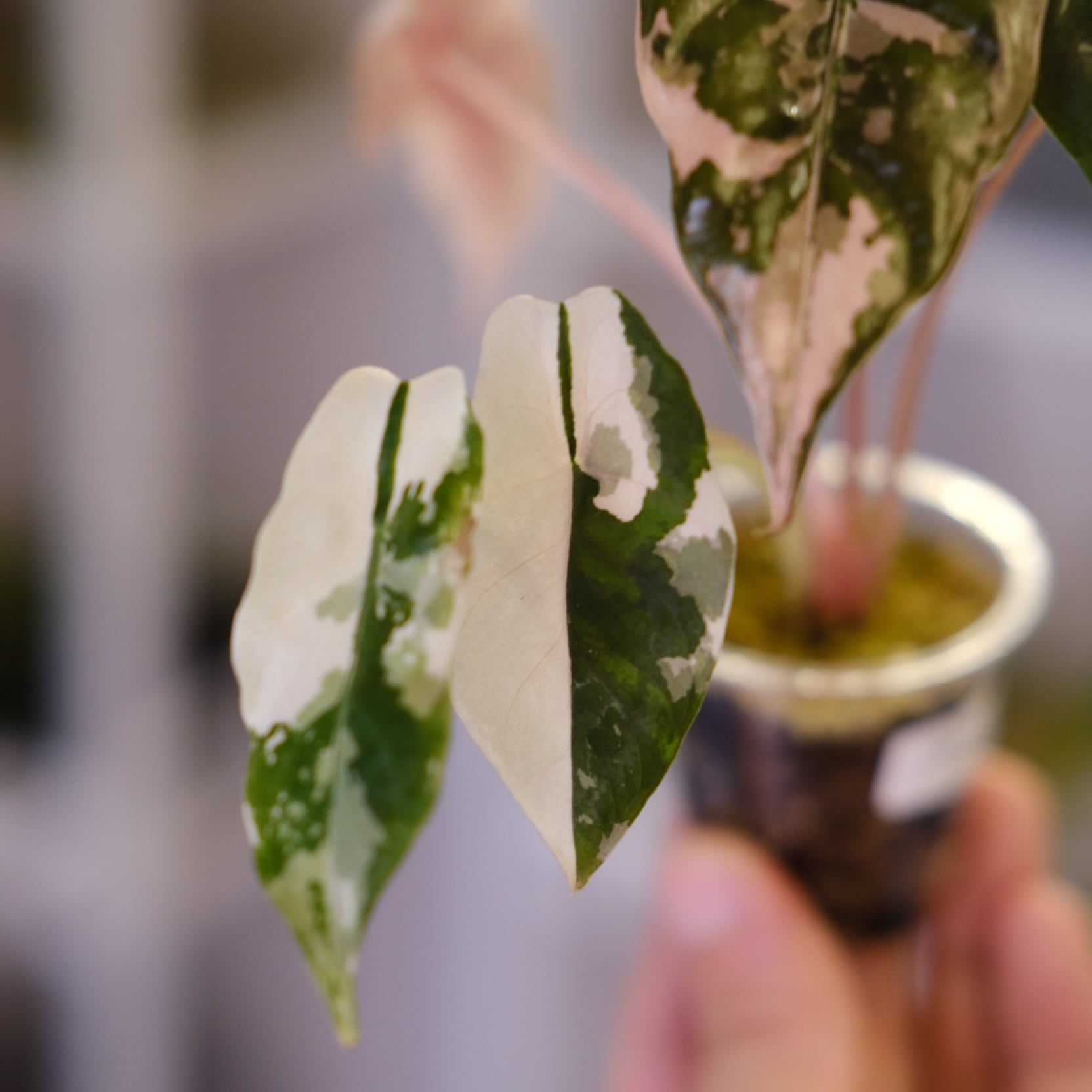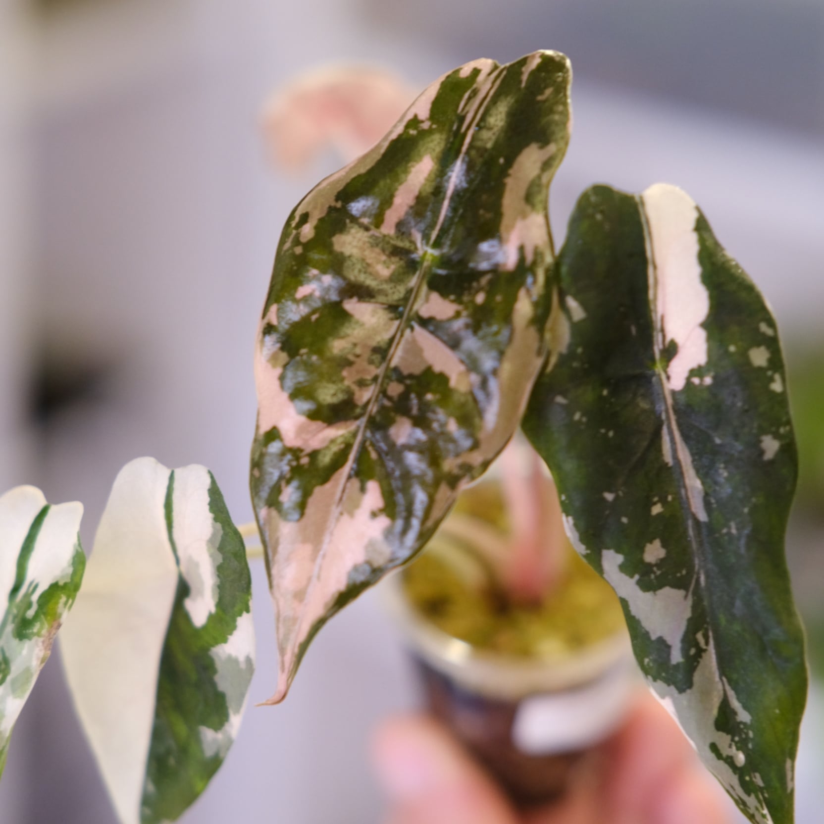 国内外問わず大変希少な「Alocasia chantrieri pink(アロカシア・シャントリエリ・ピンク)」。アロカシアの中でも特に「重厚感」と「神秘的な光沢感」を持つ品種です。
