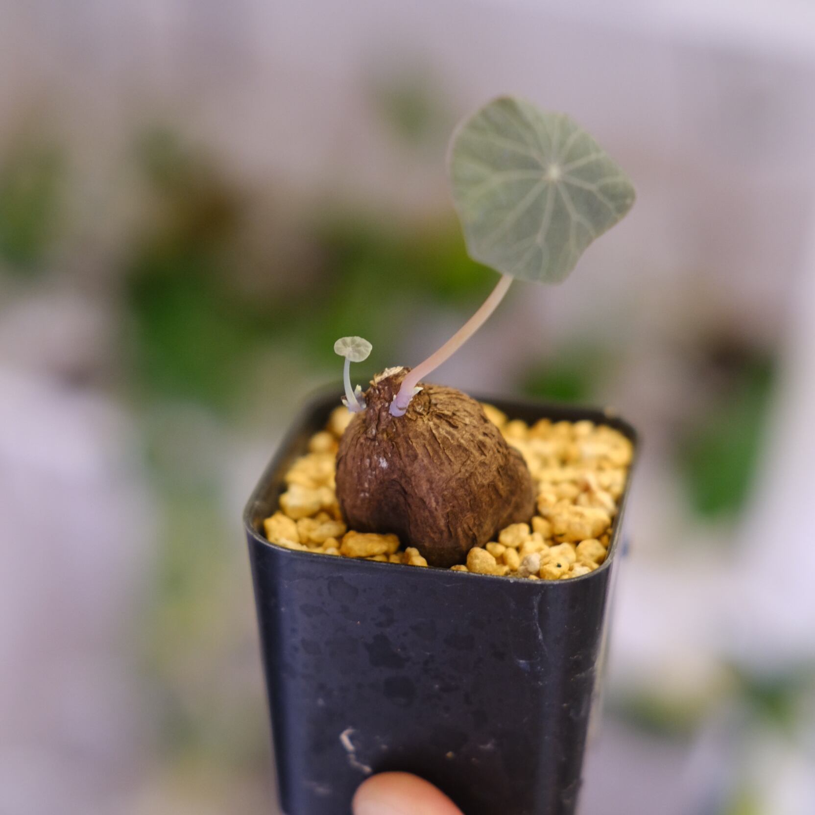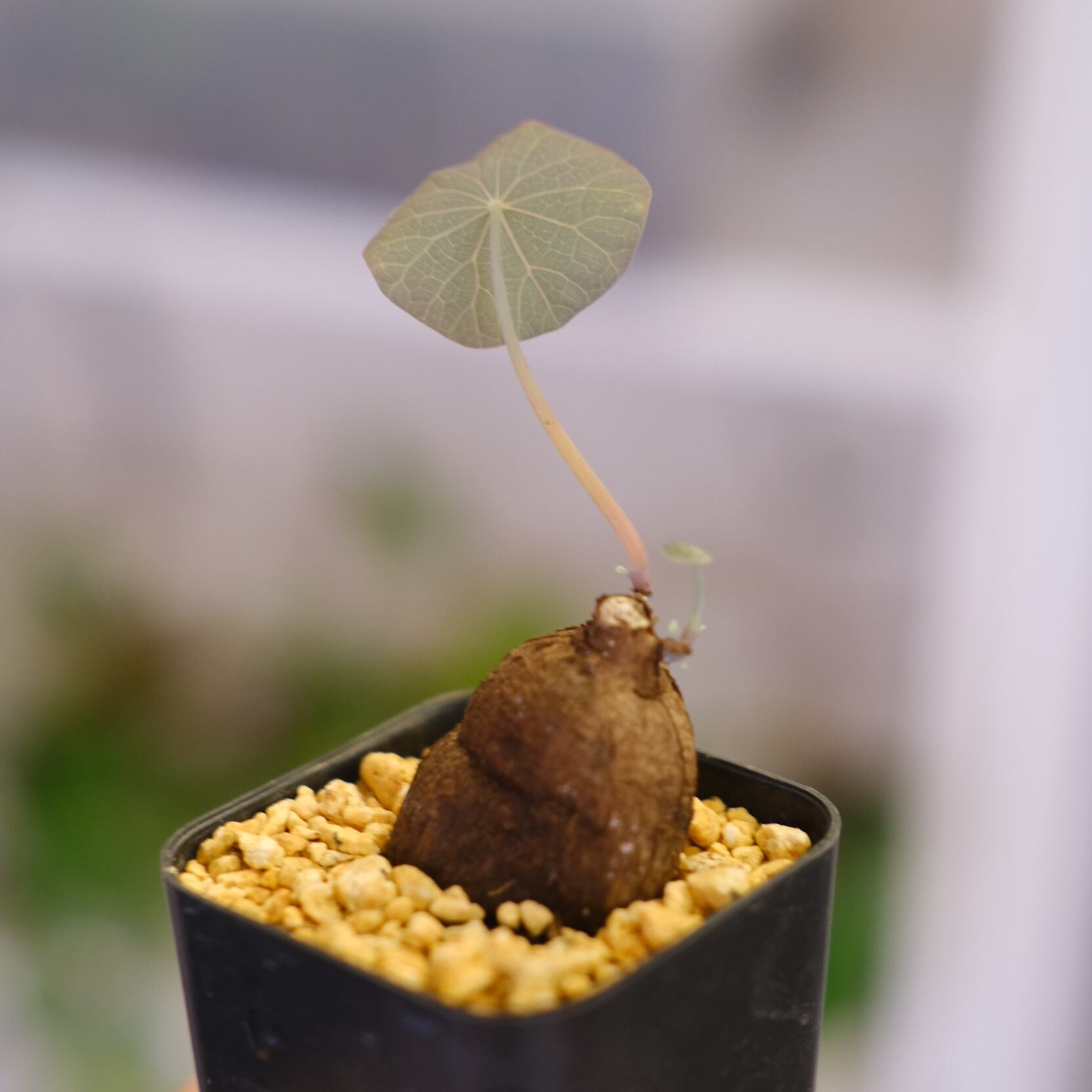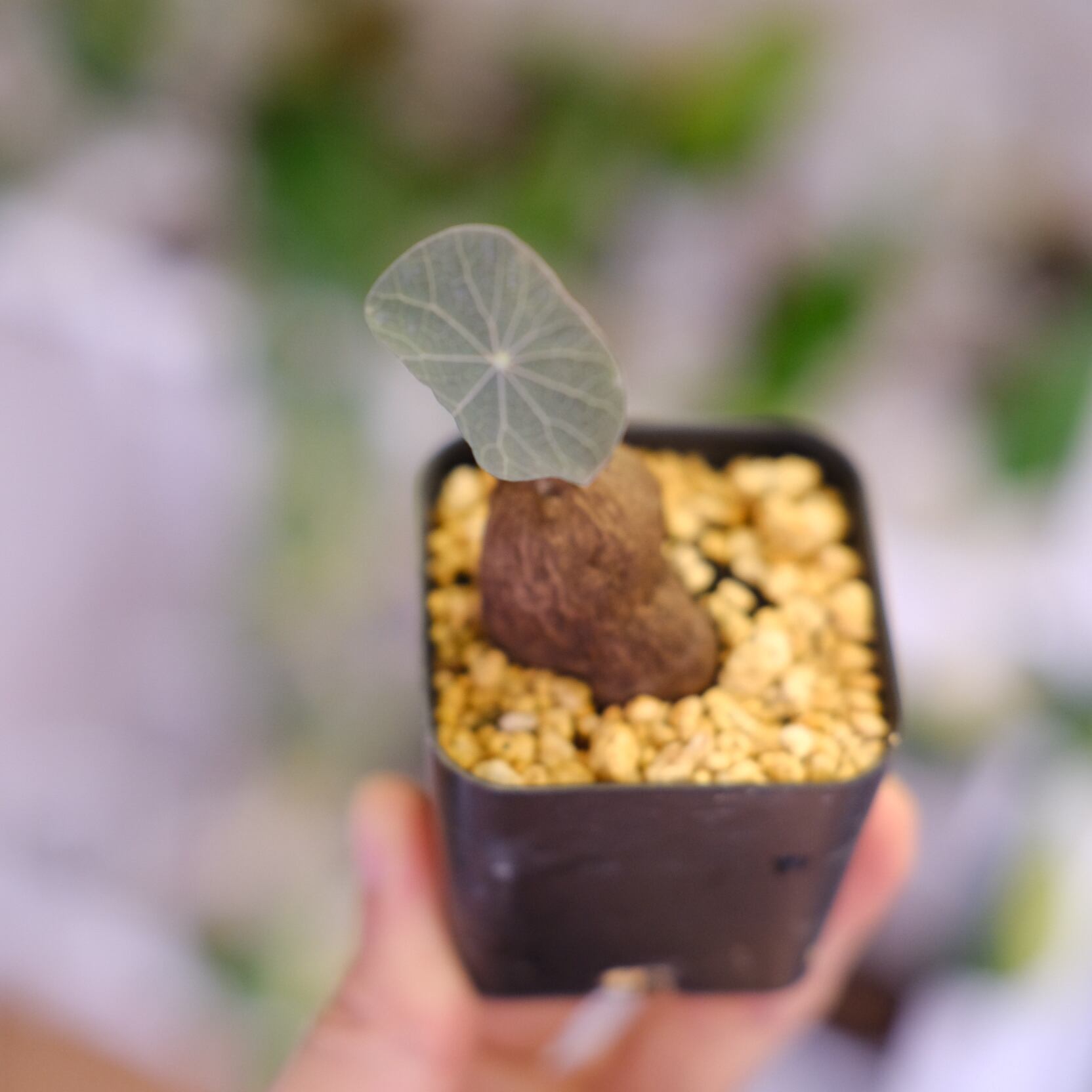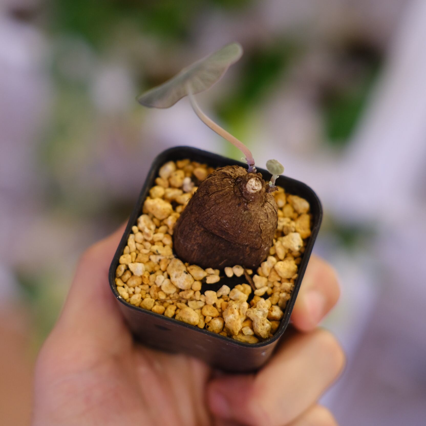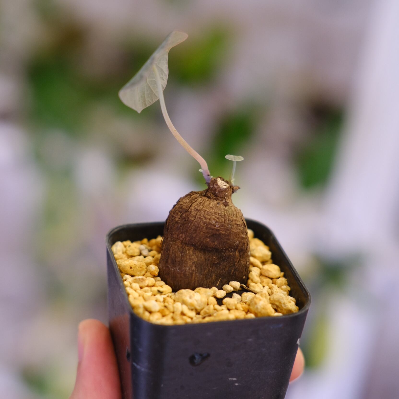 暖かく風通しの良い環境を好みます。水やりは他の塊根植物と同様に土の表面が乾いたらたっぷりとあげてください。冬は落葉しますが、また春になると新しい葉が展開するため毎年違った表情を楽しめます。(20℃を下回らなければ1年を通して新芽を展開してくれますよ)