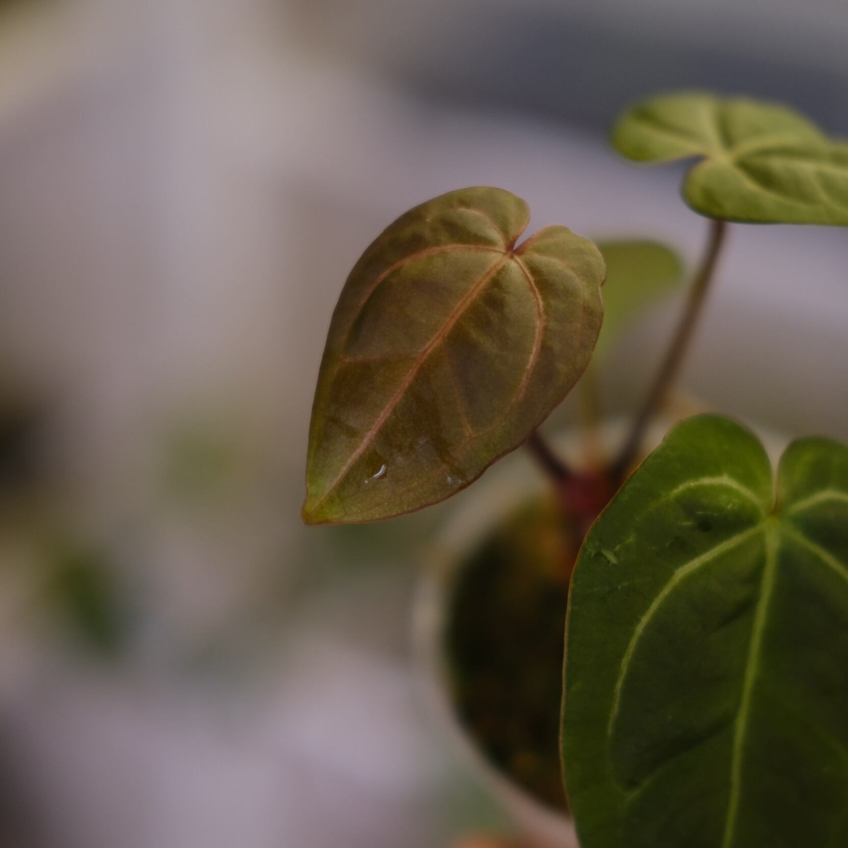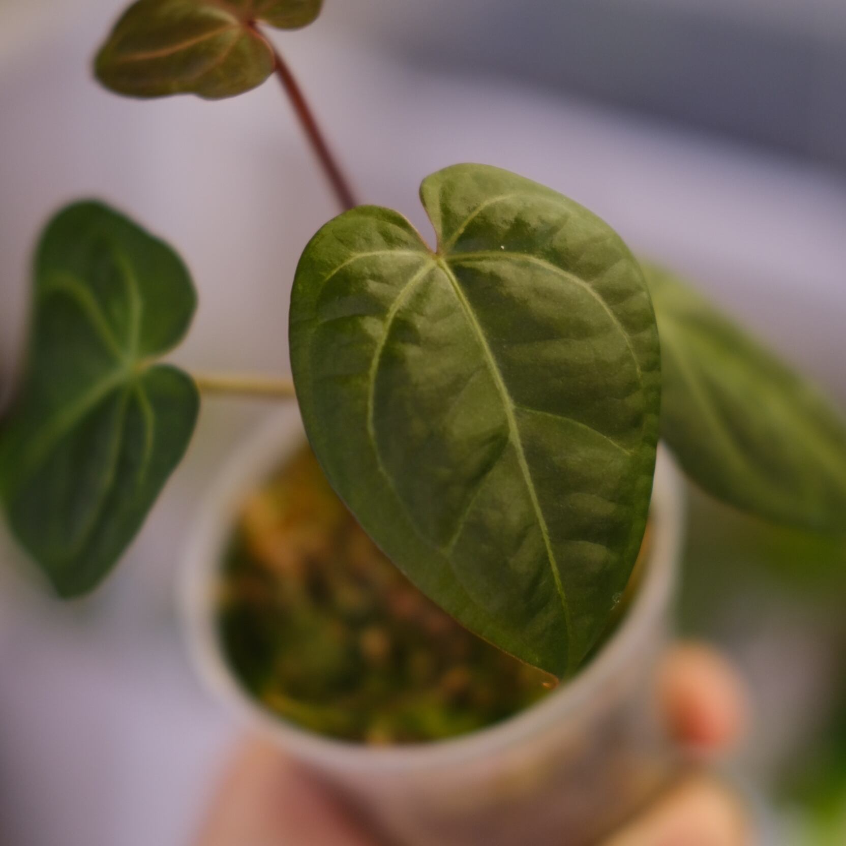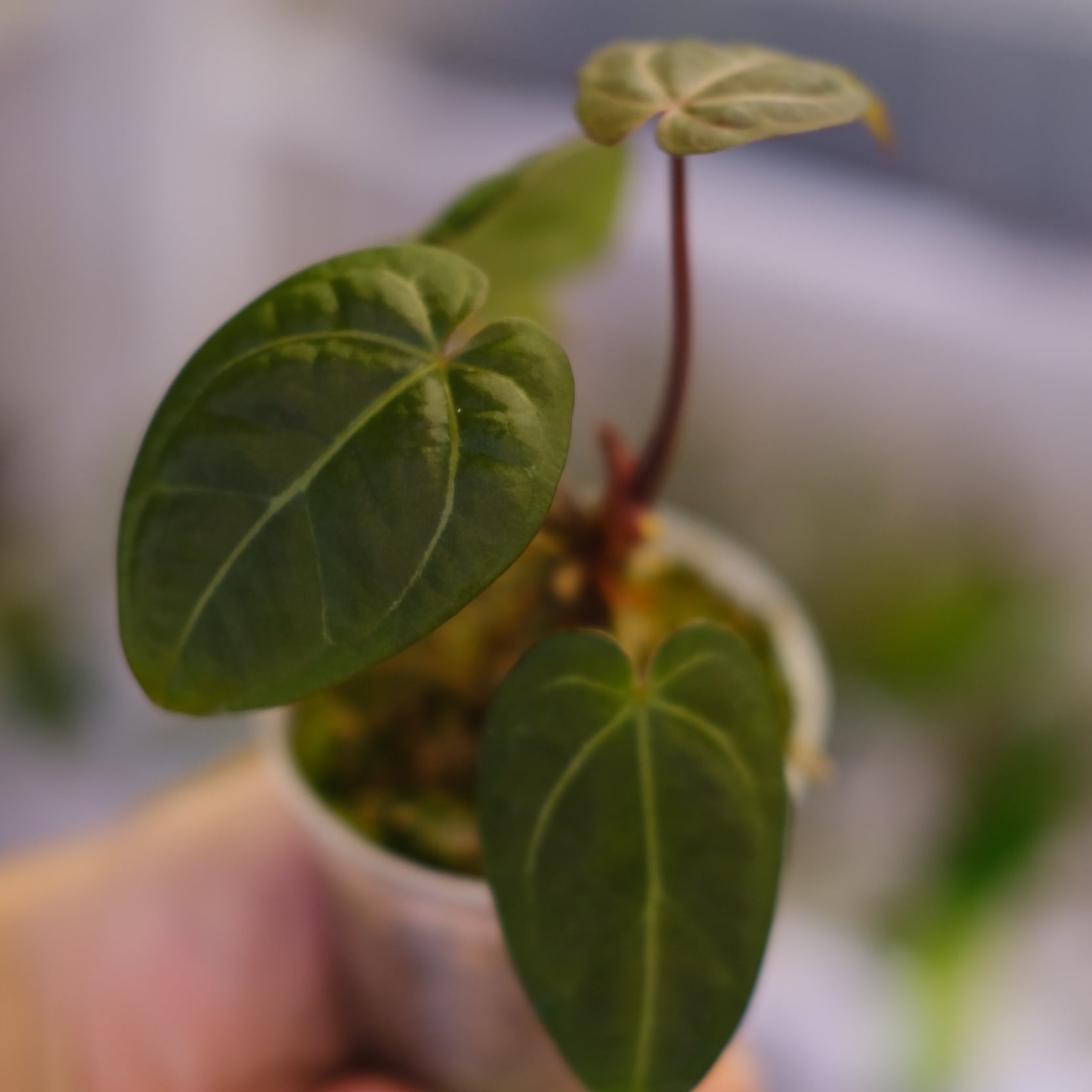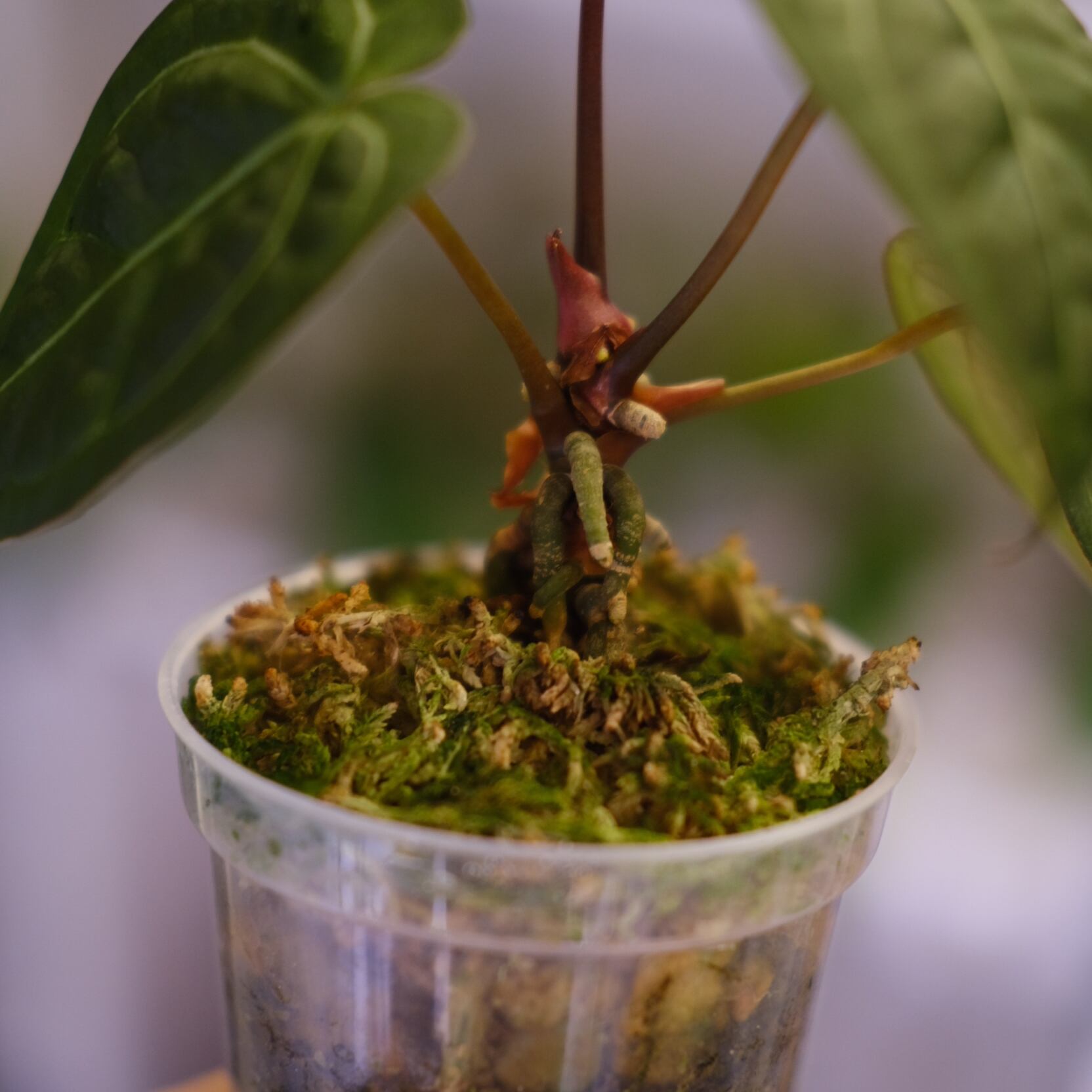 去年に10株ほど買付をしたAnthurium Red Crystallinum × Dorayakiのハイブリッドの中から、最も色が深くコンパクトな株を厳選し育てていました。