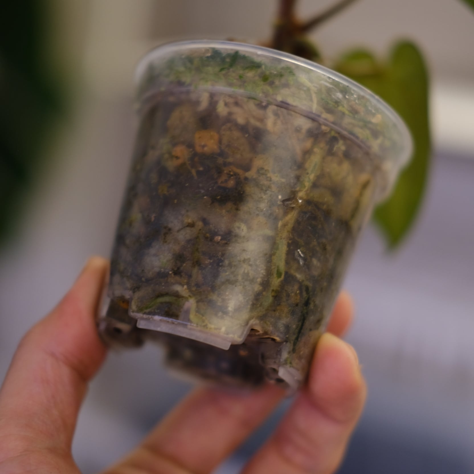 鉢は成長した植物の根を観察できるプラスチック鉢となり、アンスリウムの生育に適した【ココチップ+ひゅうが石+硬質鹿沼土+くん炭】を用土としています。