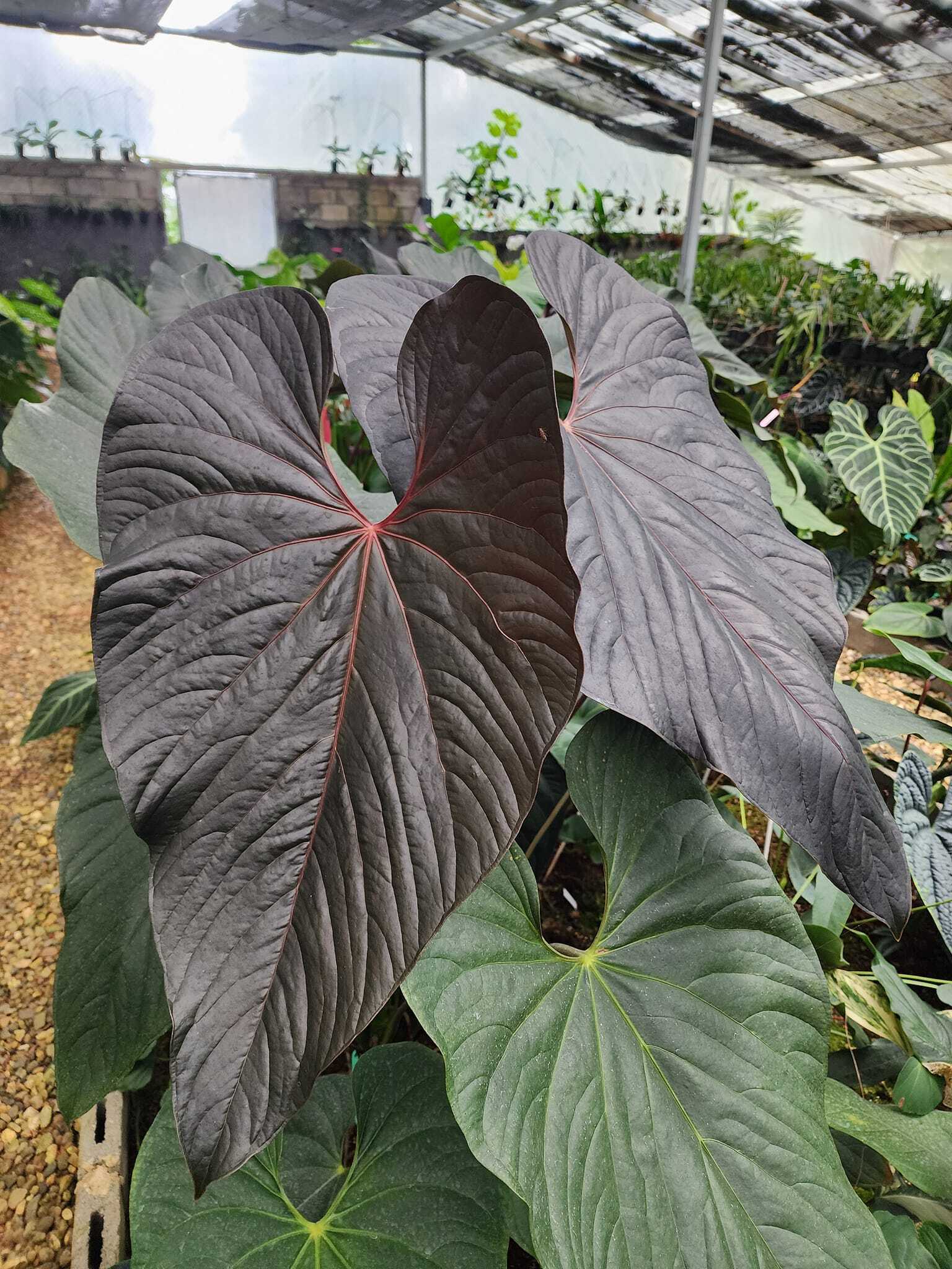 Anthurium moodeanum(アンスリウム・ムーデアナム)は、ビロードのような質感の葉と独特の深い色合いが魅力の希少なアンスリウムの一種です。ビロード系のアンスリウムの中でも比較的コンパクトで育てやすい種類とされていますが、成長すると"深いチョコレートブラウン~黒色"のような、非常に珍しい葉を展開します。