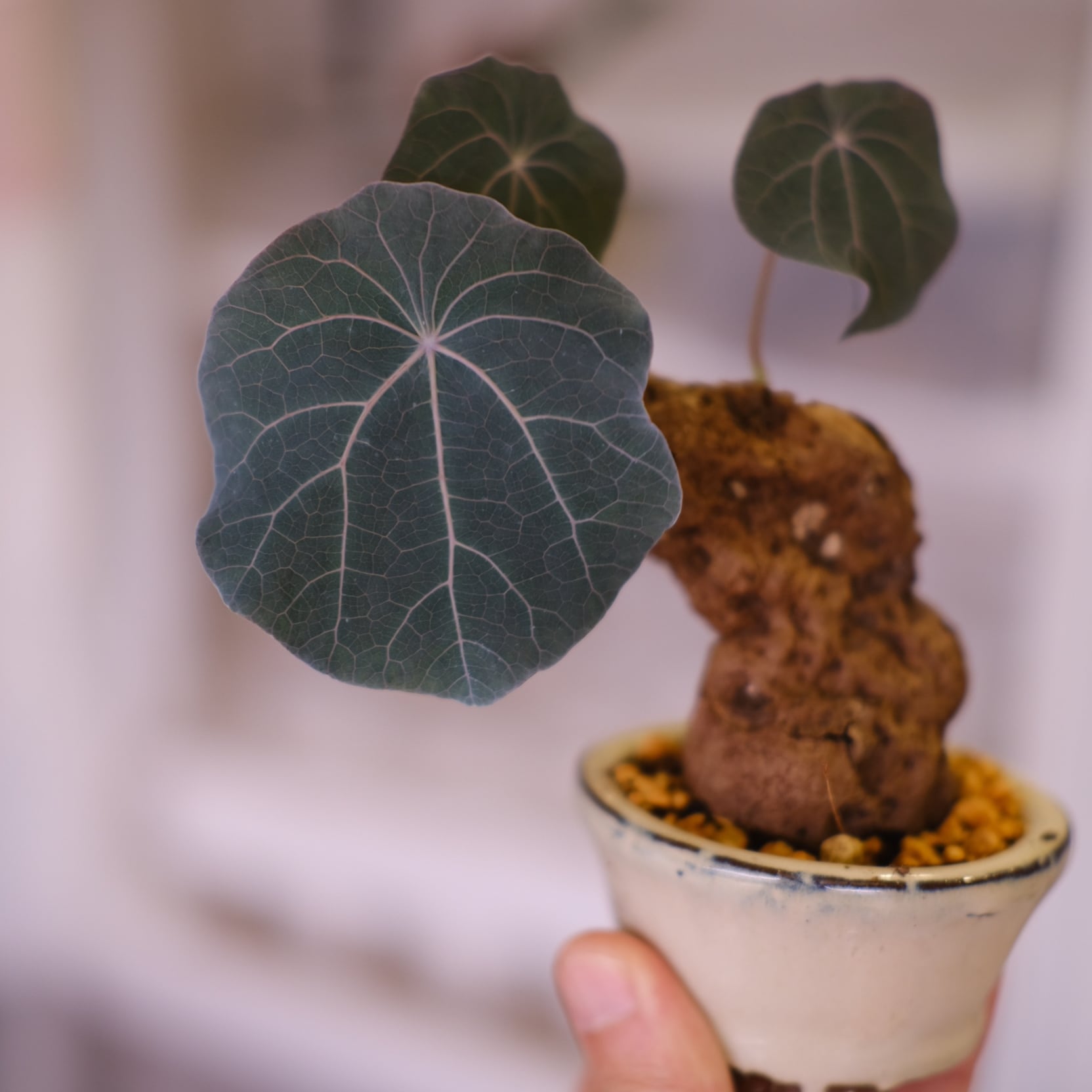 暖かく風通しの良い環境を好みます。水やりは他の塊根植物と同様に土の表面が乾いたらたっぷりとあげてください。冬は落葉しますが、また春になると新しい葉が展開するため毎年違った表情を楽しめます。(20℃を下回らなければ1年を通して新芽を展開してくれますよ)