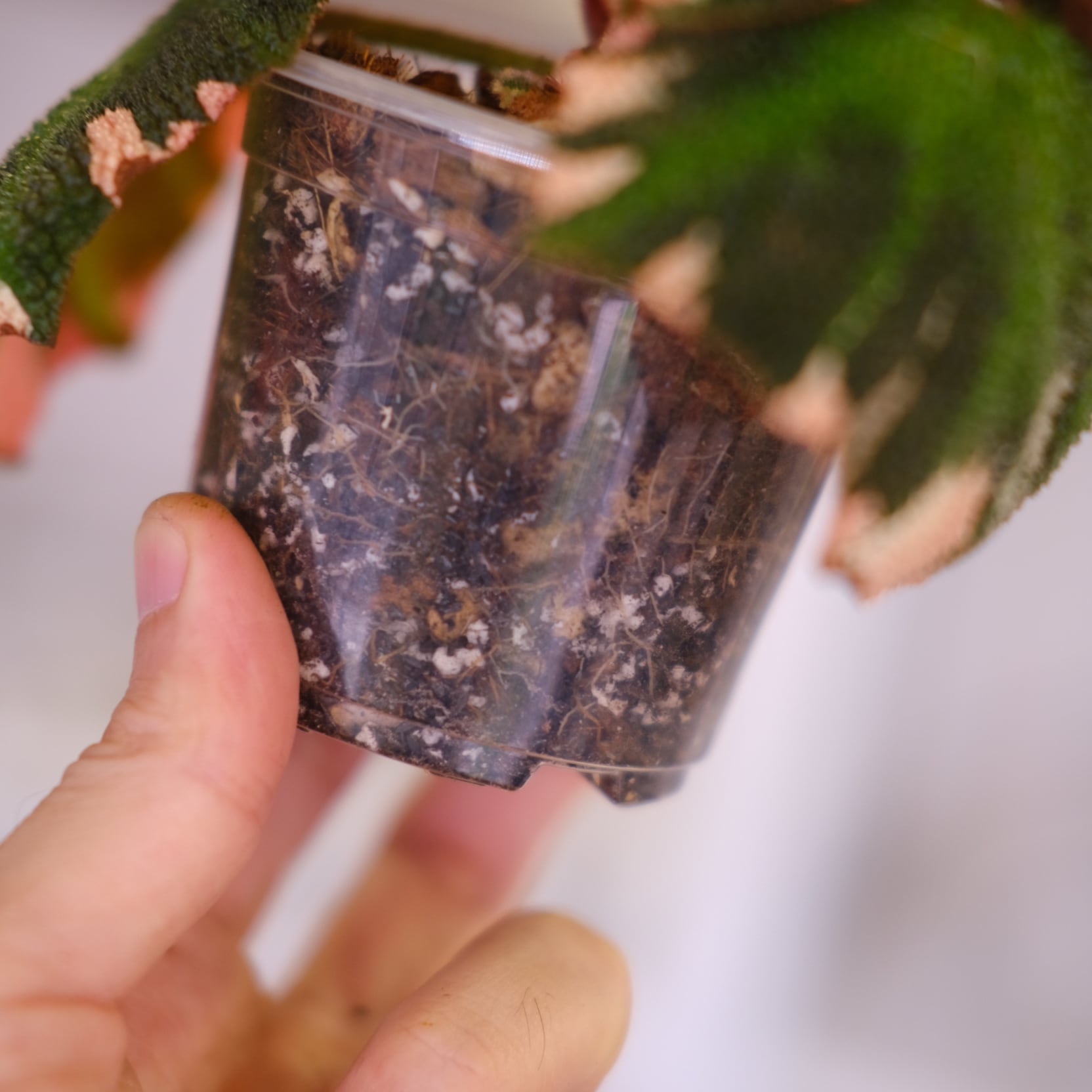 成長した植物の"根"を観察できるプラスチックカップを使用しています。そのため発根状況が確認できた健康な株のみを出品しています。