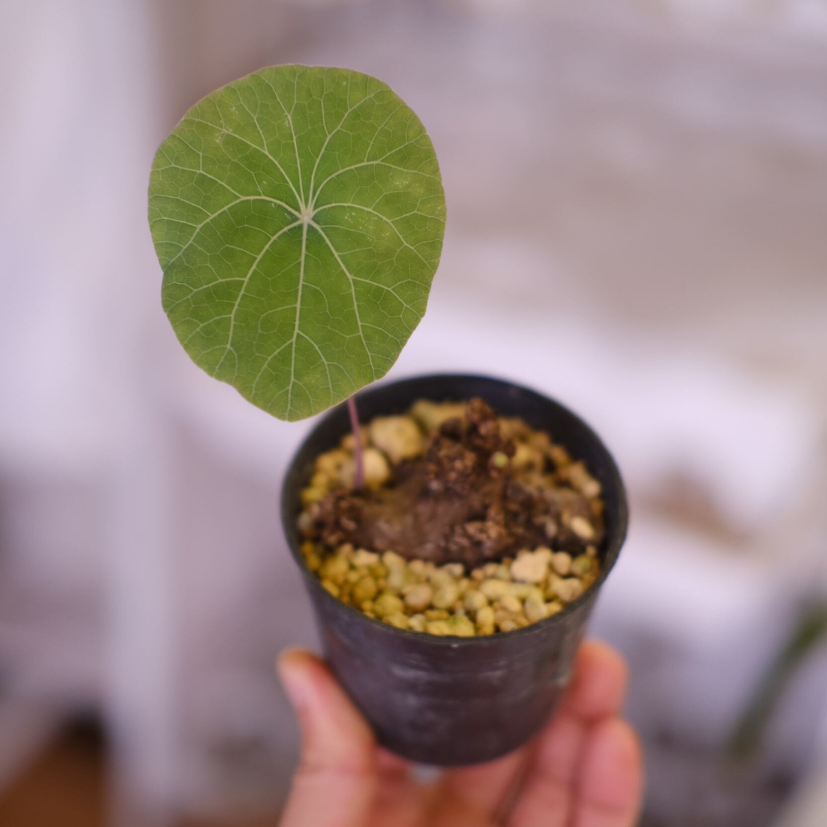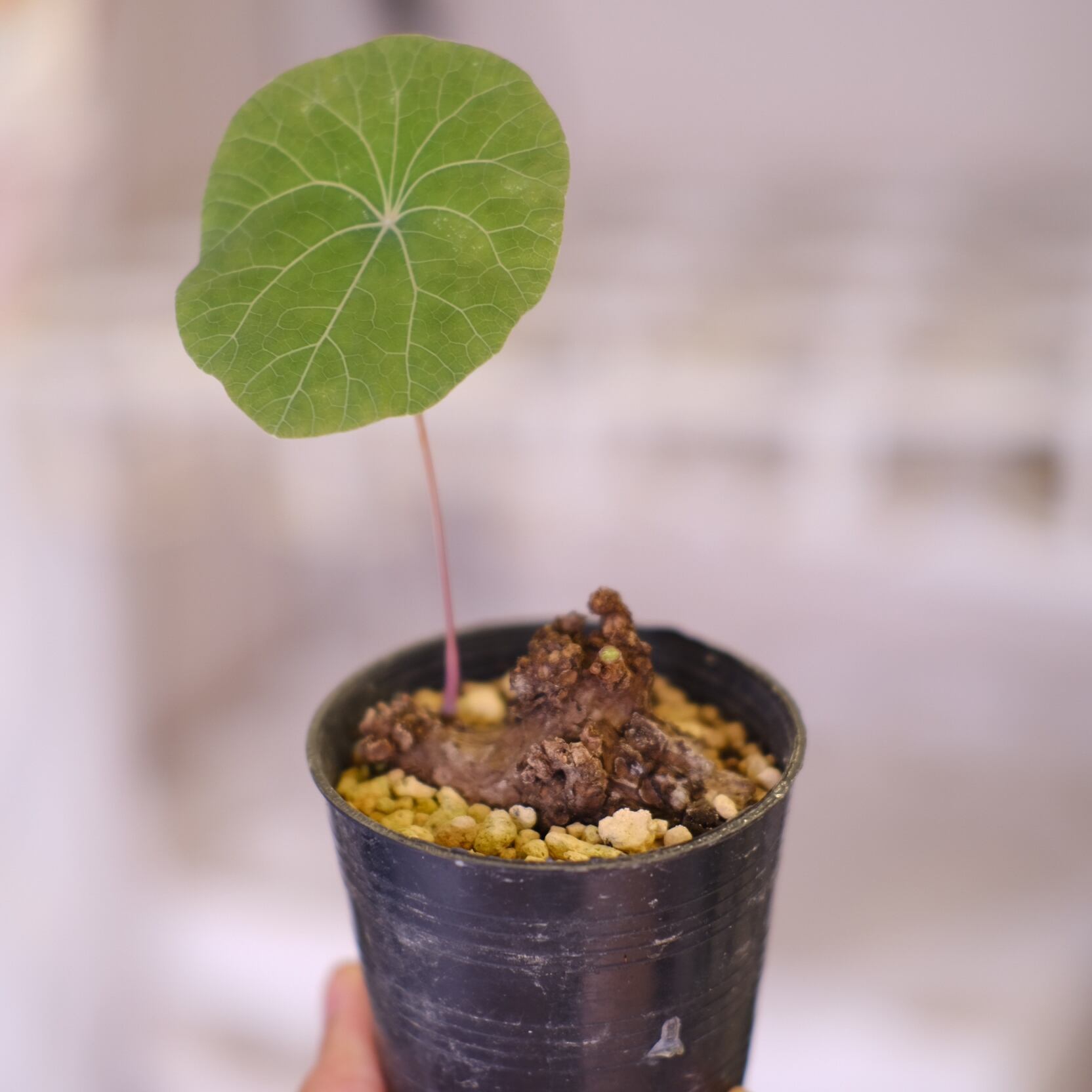 暖かく風通しの良い環境を好みます。水やりは他の塊根植物と同様に土の表面が乾いたらたっぷりとあげてください。冬は落葉しますが、また春になると新しい葉が展開するため毎年違った表情を楽しめます。(20℃を下回らなければ1年を通して新芽を展開してくれますよ)