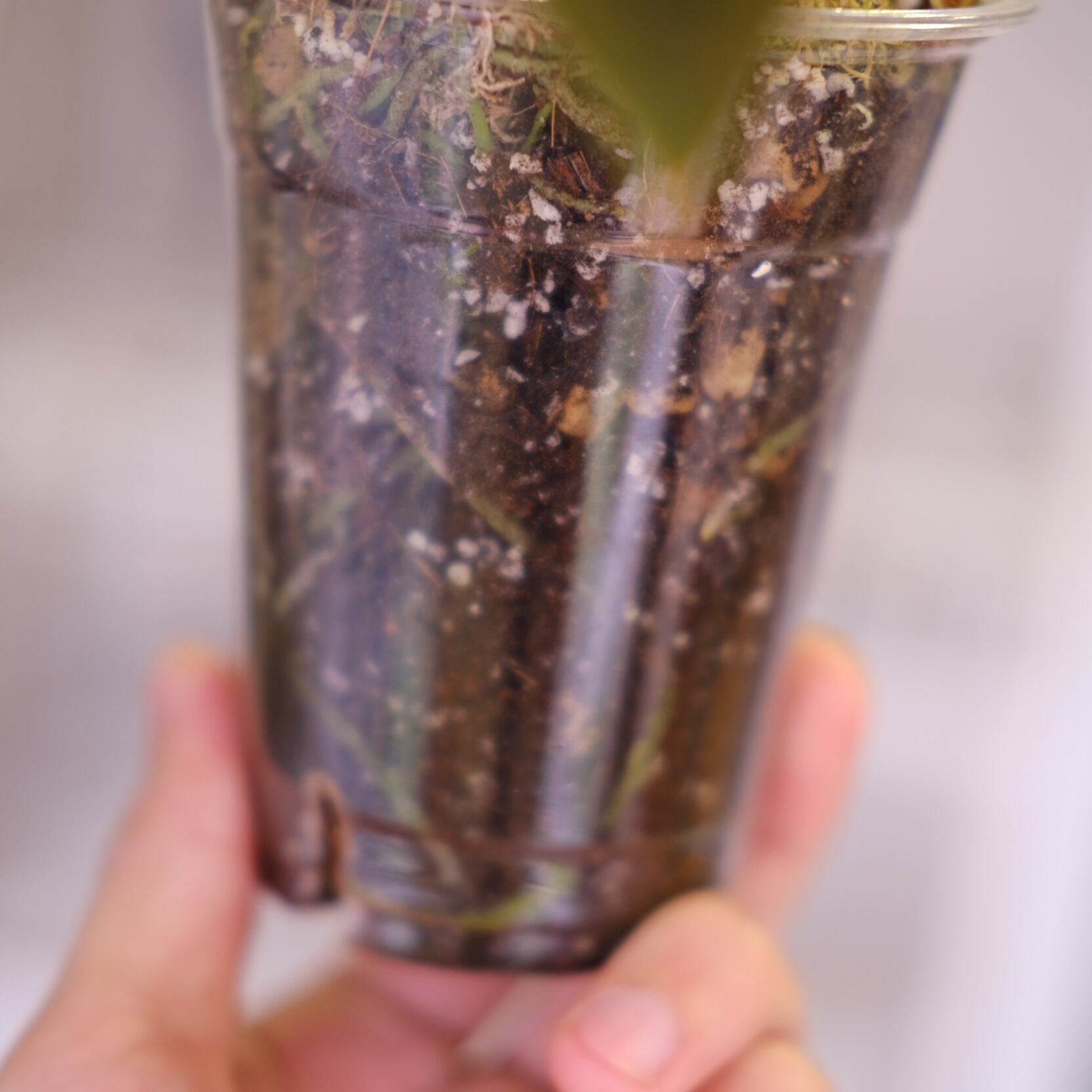成長した植物の"根"を観察できるプラスチックカップを使用しています。そのため発根状況が確認できた健康な株のみを出品しています。