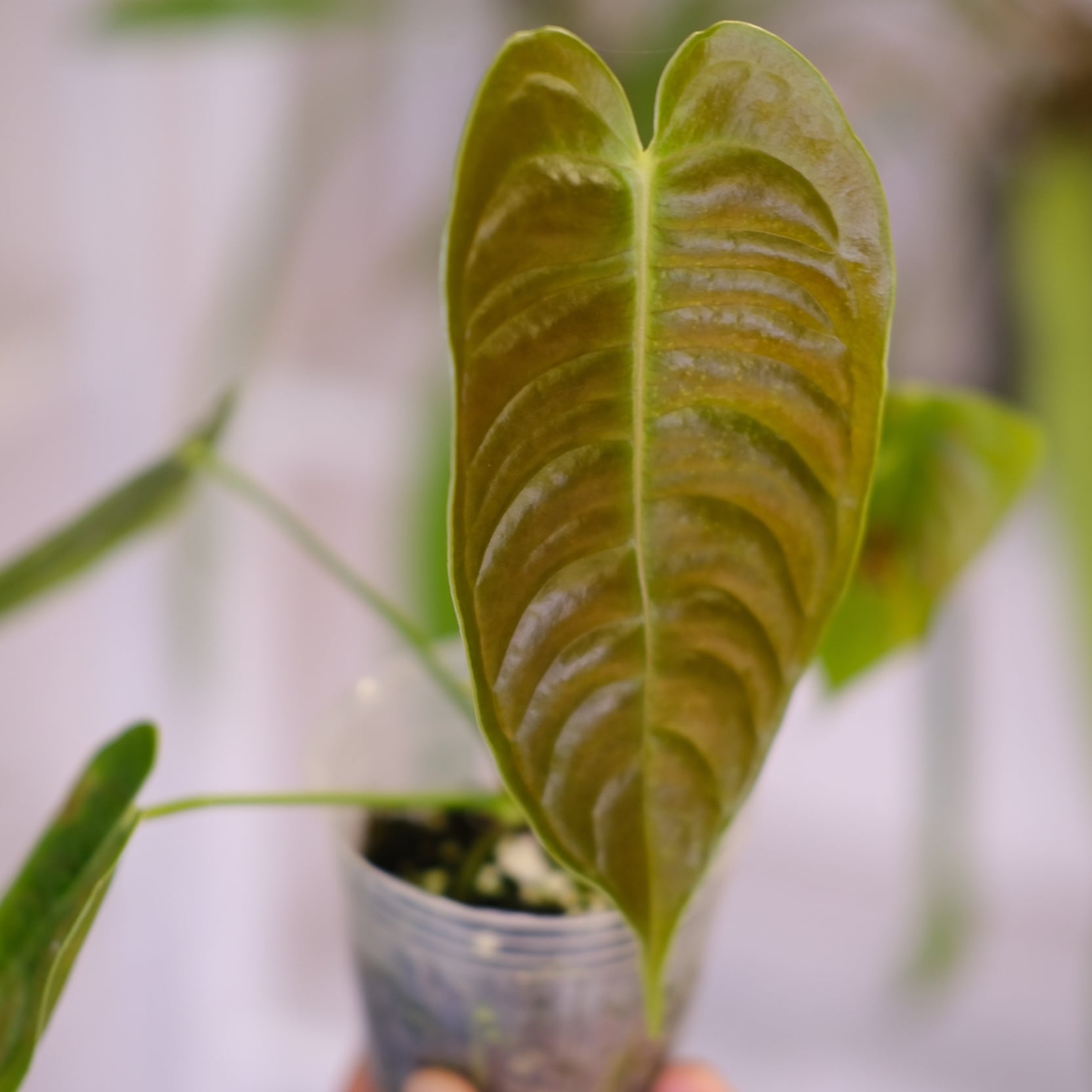 アンスリウム・ベイチー(Anthurium Veitchii)は、アンスリウム属の中でも人気の高い品種で、ダラッと垂れる美しい葉が特徴です。 威厳ある風格から「アンスリウムの王様」とも呼ばれています。
