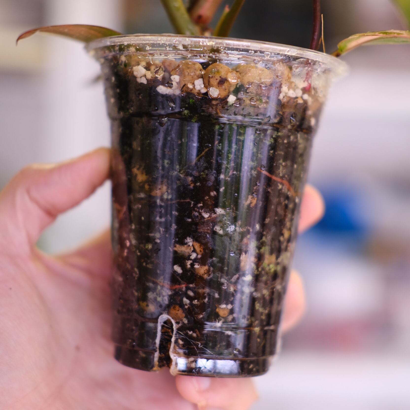 鉢は成長した植物の根を観察できるプラスチック鉢となり、生育に適した【水苔】を用土としています。