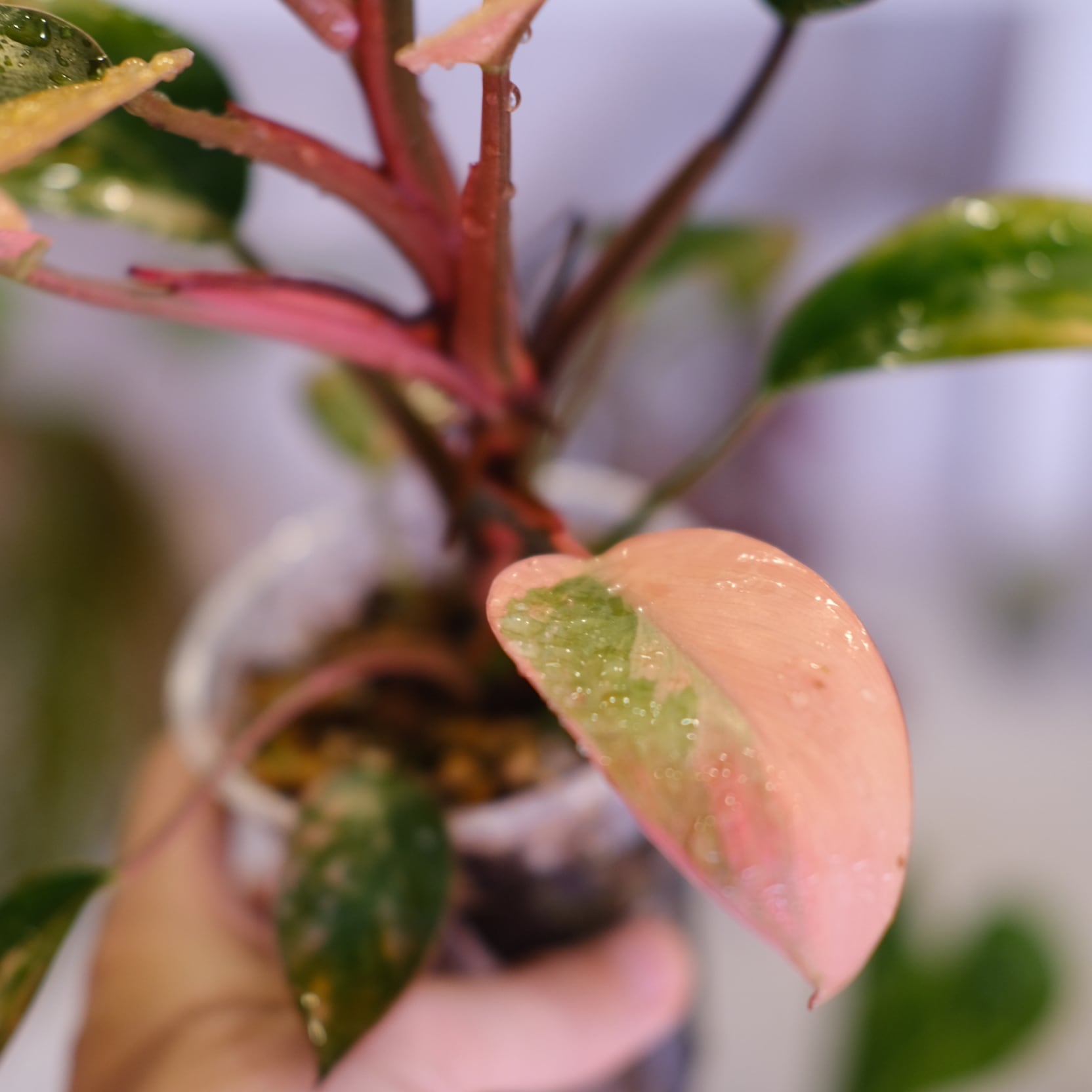 若い葉は赤やブロンズ色を帯びており、成長すると徐々に深い緑色に変化します。赤い茎とダークグリーンの葉のコントラストが美しく、エレガントな見た目と丈夫さを兼ね備えた品種です。