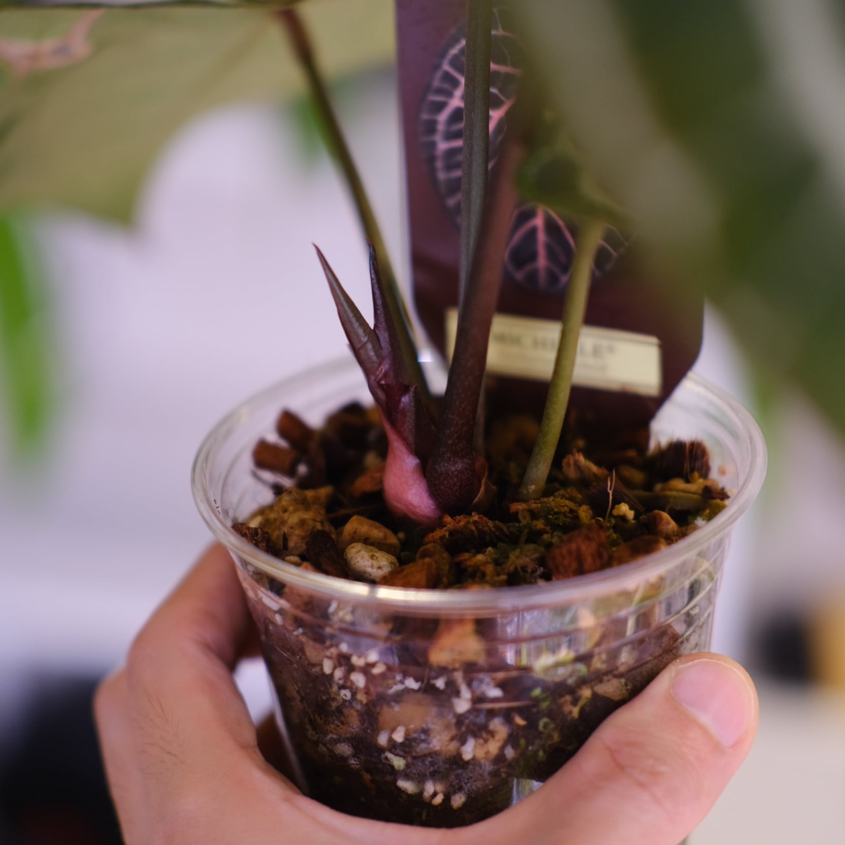 アンスリウム交配種、最高傑作の一つ'Michelle'です。2022 TPIE Show (Tropical Plant International Expo) 米国フロリダ州タンパ で「Best New Flowering Plant」を受賞した品種です。DOC BLOCK氏による交配種であることを証明する正規タグ付きです。