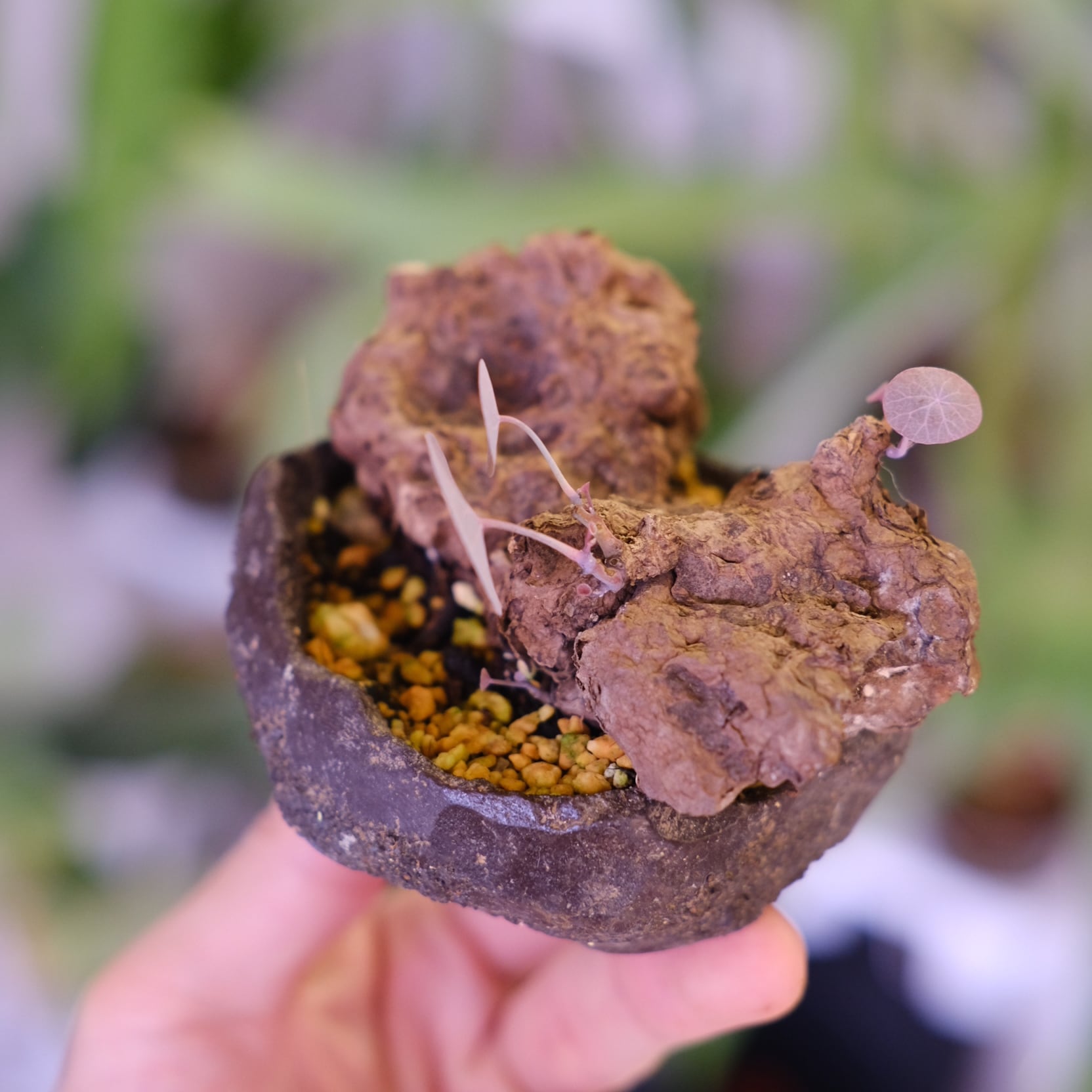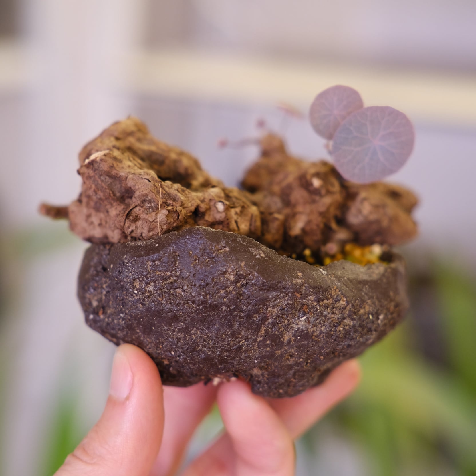 暖かく風通しの良い環境を好みます。水やりは他の塊根植物と同様に土の表面が乾いたらたっぷりとあげてください。冬は落葉しますが、また春になると新しい葉が展開するため毎年違った表情を楽しめます。(20℃を下回らなければ1年を通して新芽を展開してくれますよ)
