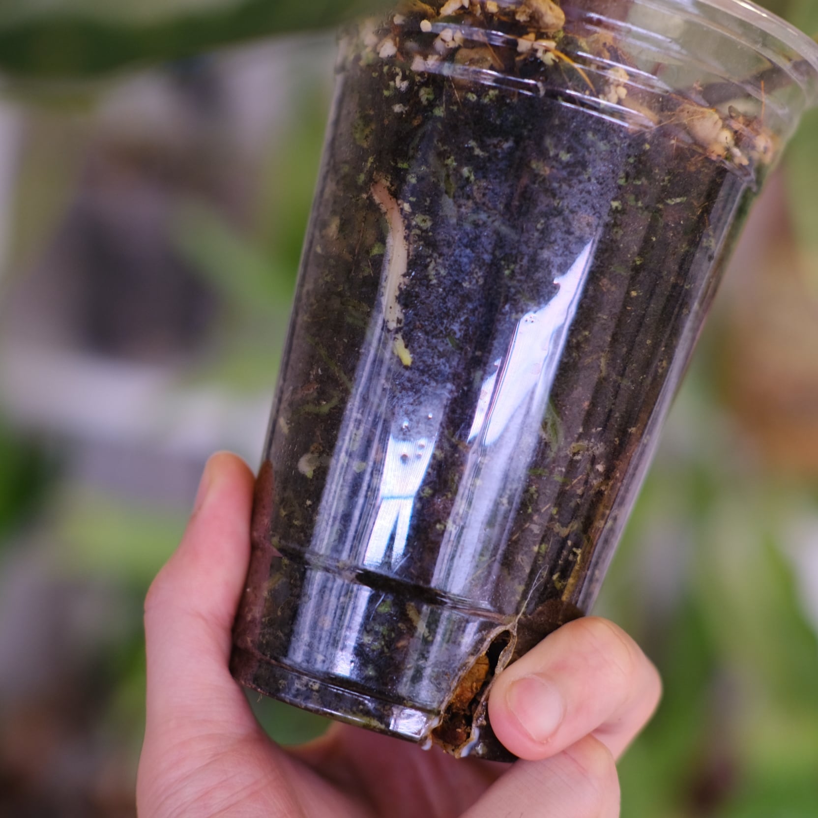 成長した植物の"根"を観察できるプラスチックカップを使用しています。そのため発根状況が確認できた健康な株のみを出品しています。