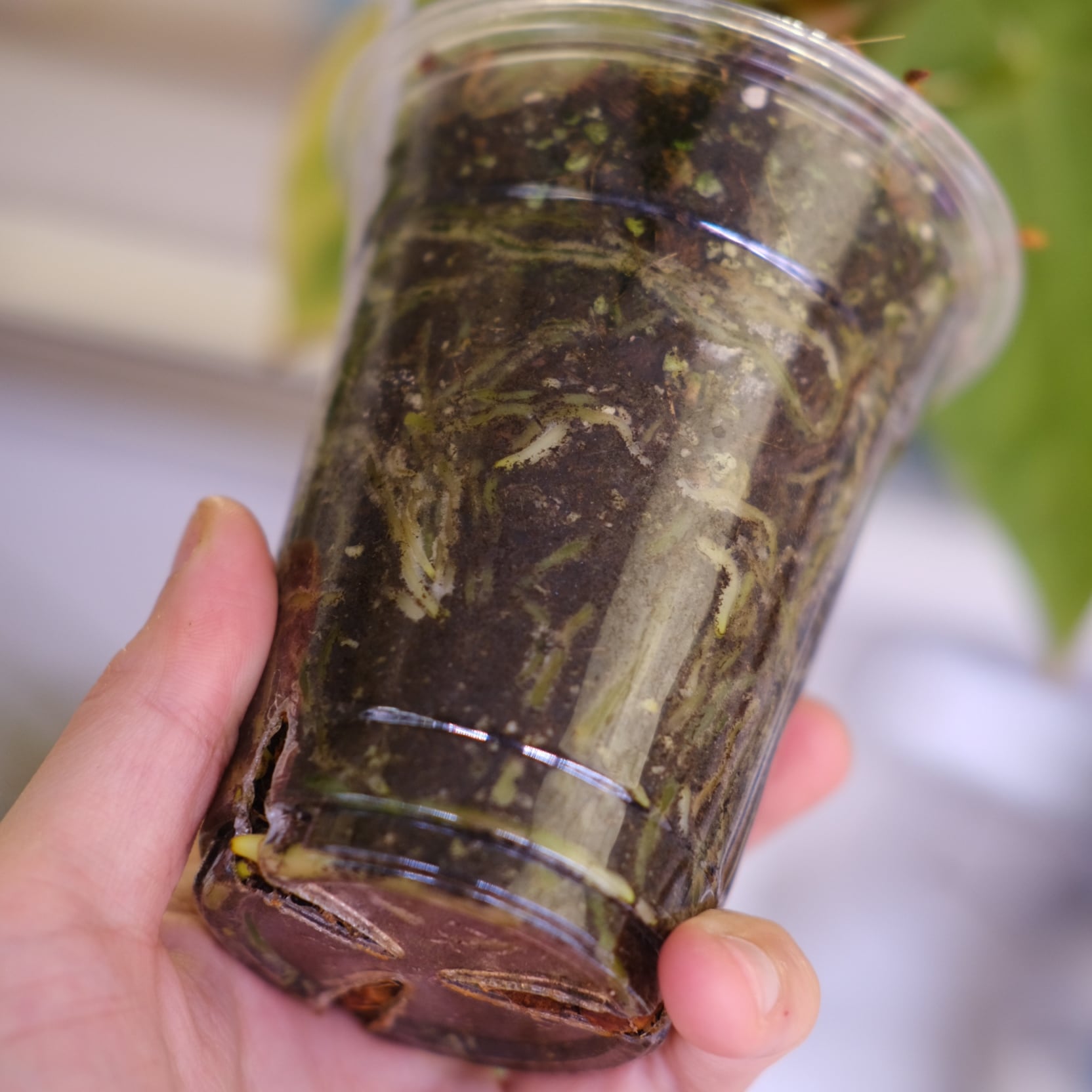成長した植物の"根"を観察できるプラスチックカップを使用しています。そのため発根状況が確認できた健康な株のみを出品しています。