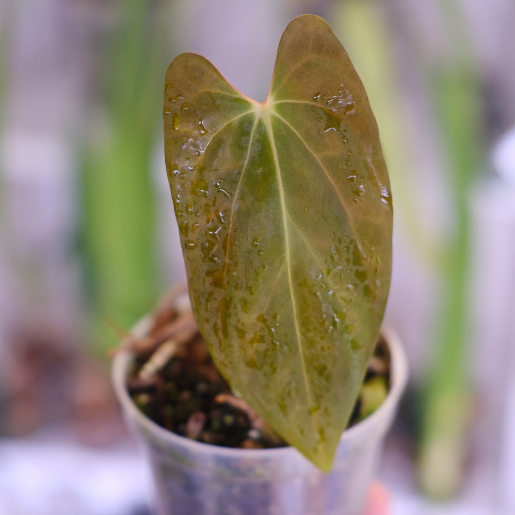 パピリラミナム(FS)×アンスリウム エース オブ スペード(AOS)|Papillilaminum ‘Fort Sherman' × Anthurium Ace of spades|観葉植物