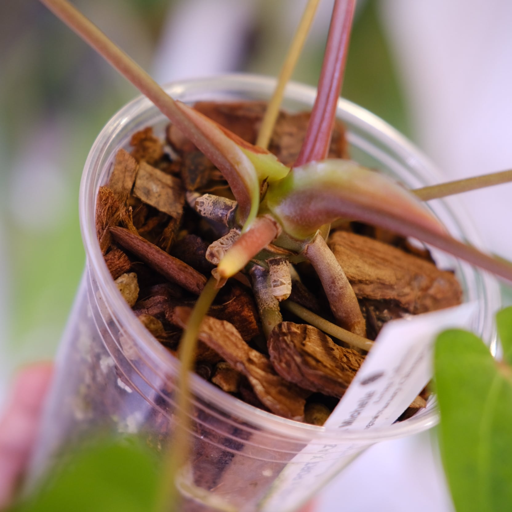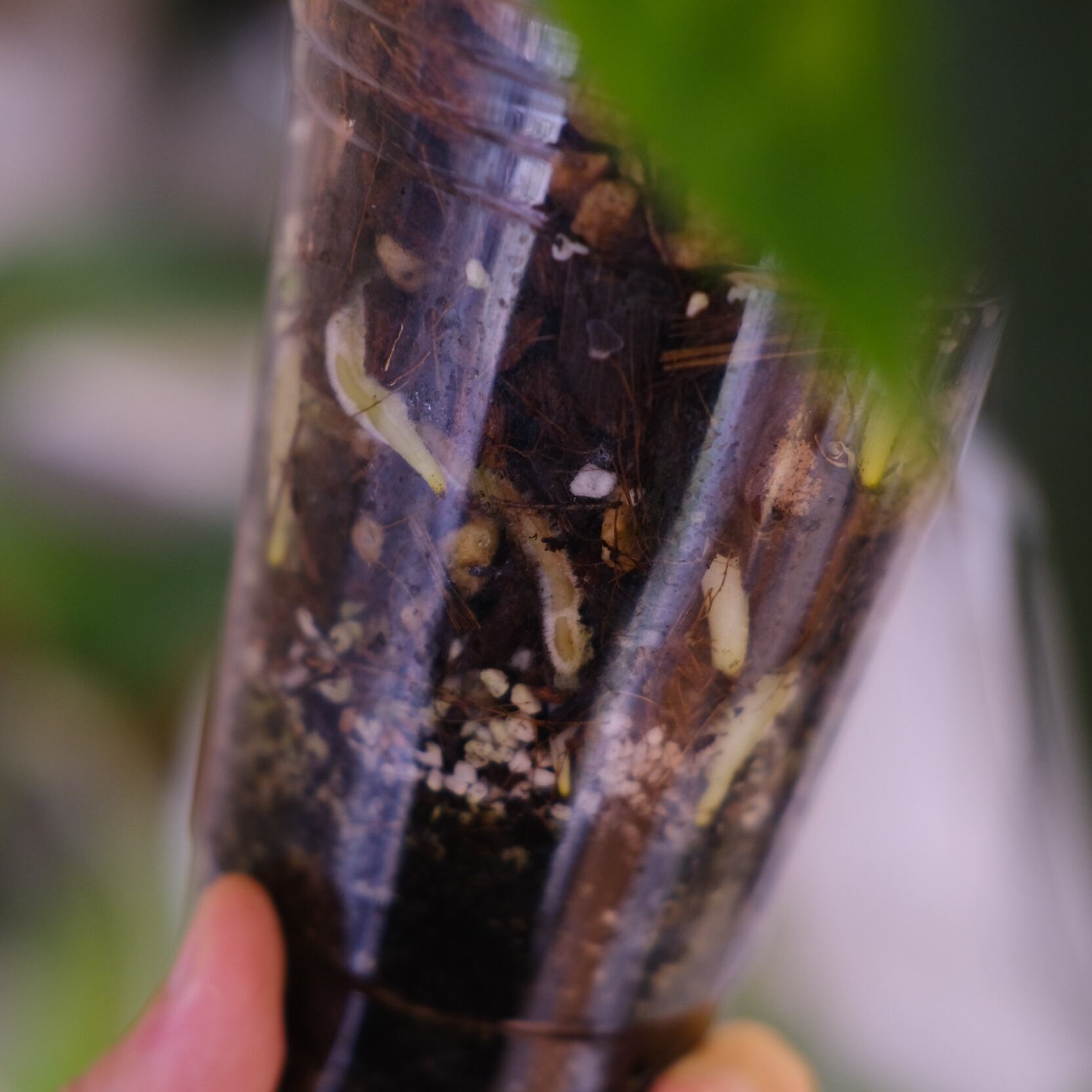 成長した植物の"根"を観察できるプラスチックカップを使用しています。そのため発根状況が確認できた健康な株のみを出品しています。