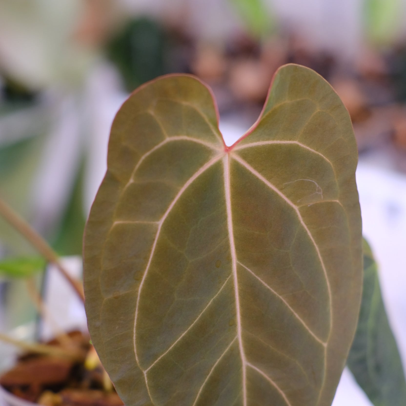 Anthurium ‘Ace of Spades’(略:AOS)と Anthurium Zara × Michelle(略:Zara × Michelle)の交配によって生まれたもので、葉の質感・色・葉脈など、両親の魅力を併せ持つことが期待されている品種です。
