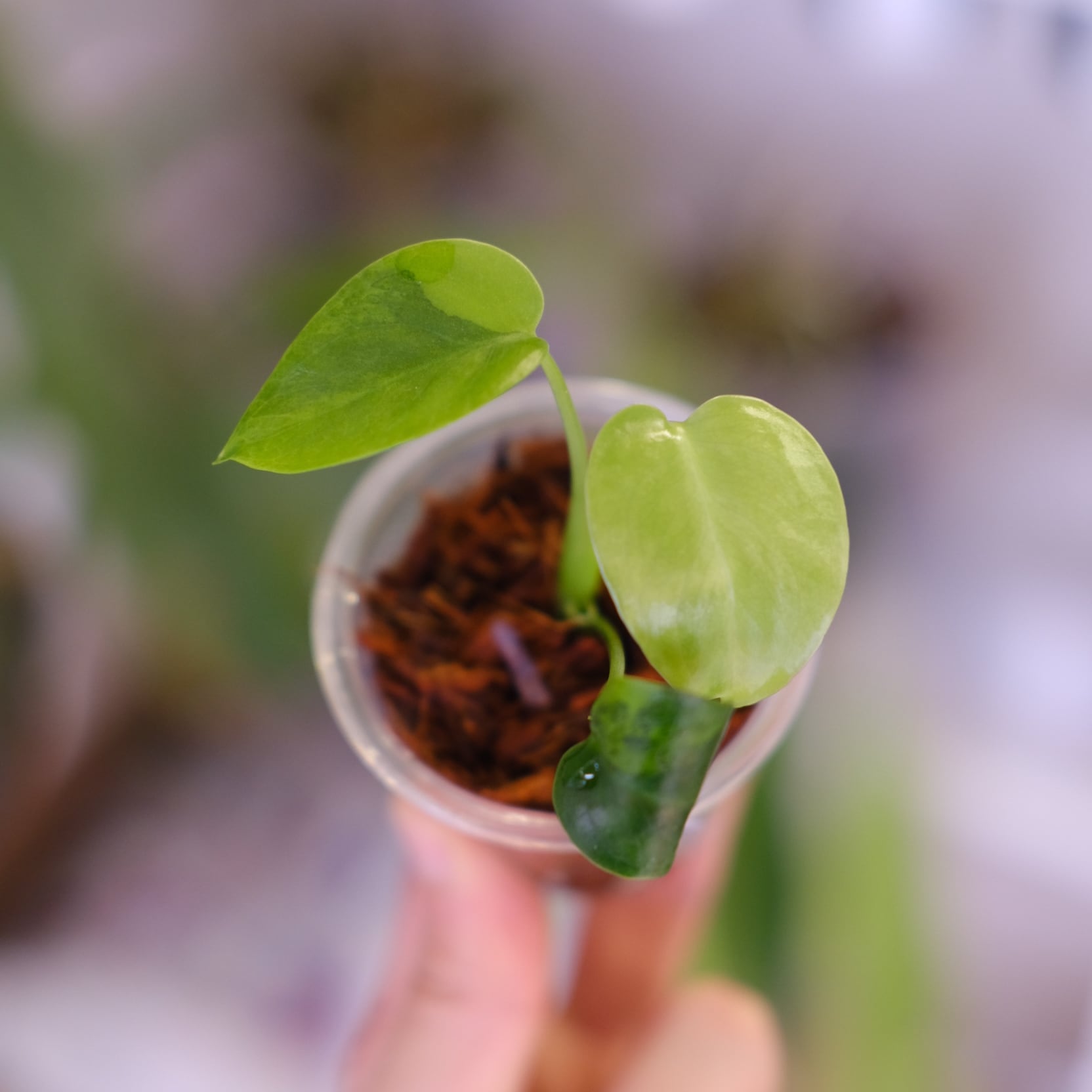 green on green は、緑斑が不規則に入る系統の総称的な呼び名で、完全固定品種ではありません。そのため、葉ごとに模様の出方が異なり、斑が強く出る葉と控えめな葉が混在する場合があります。白斑系に比べて葉焼け耐性はやや高いものの、斑部分は光に弱いため、直射日光は避けた管理が適しています。