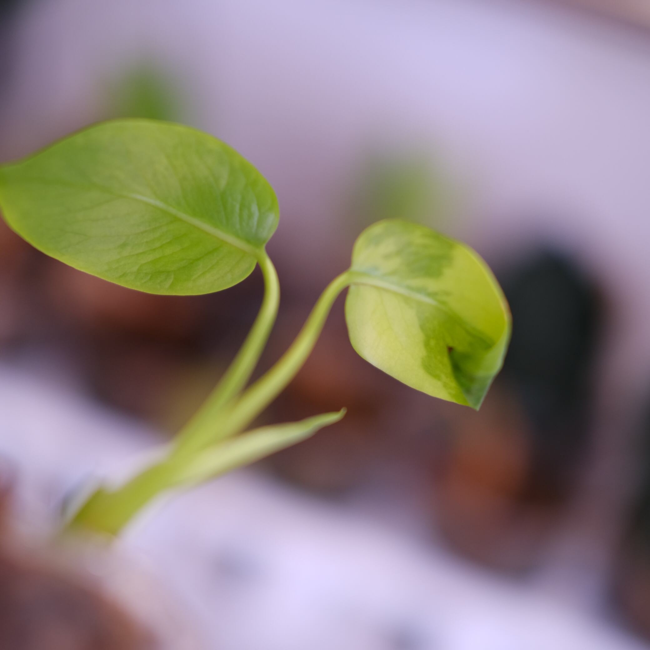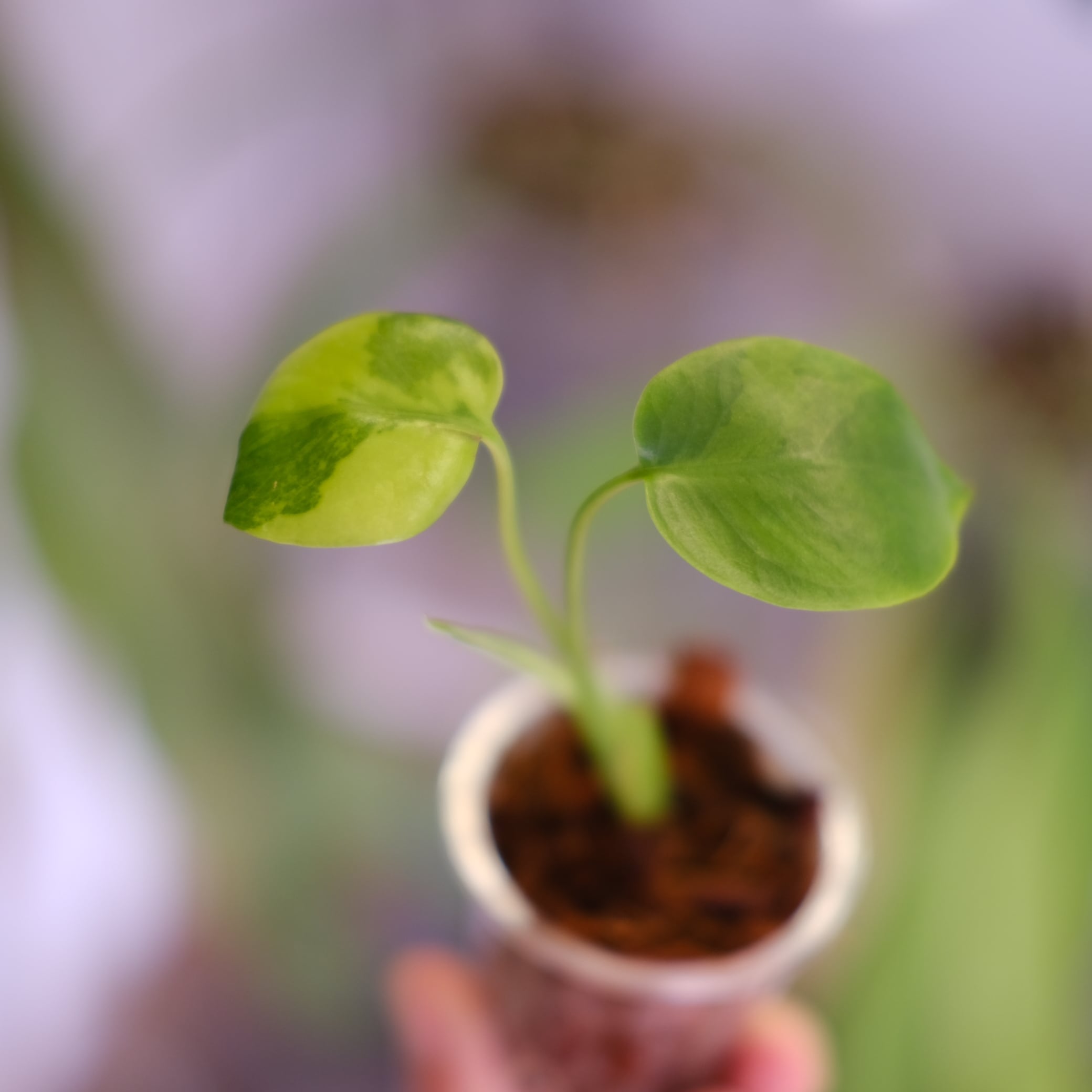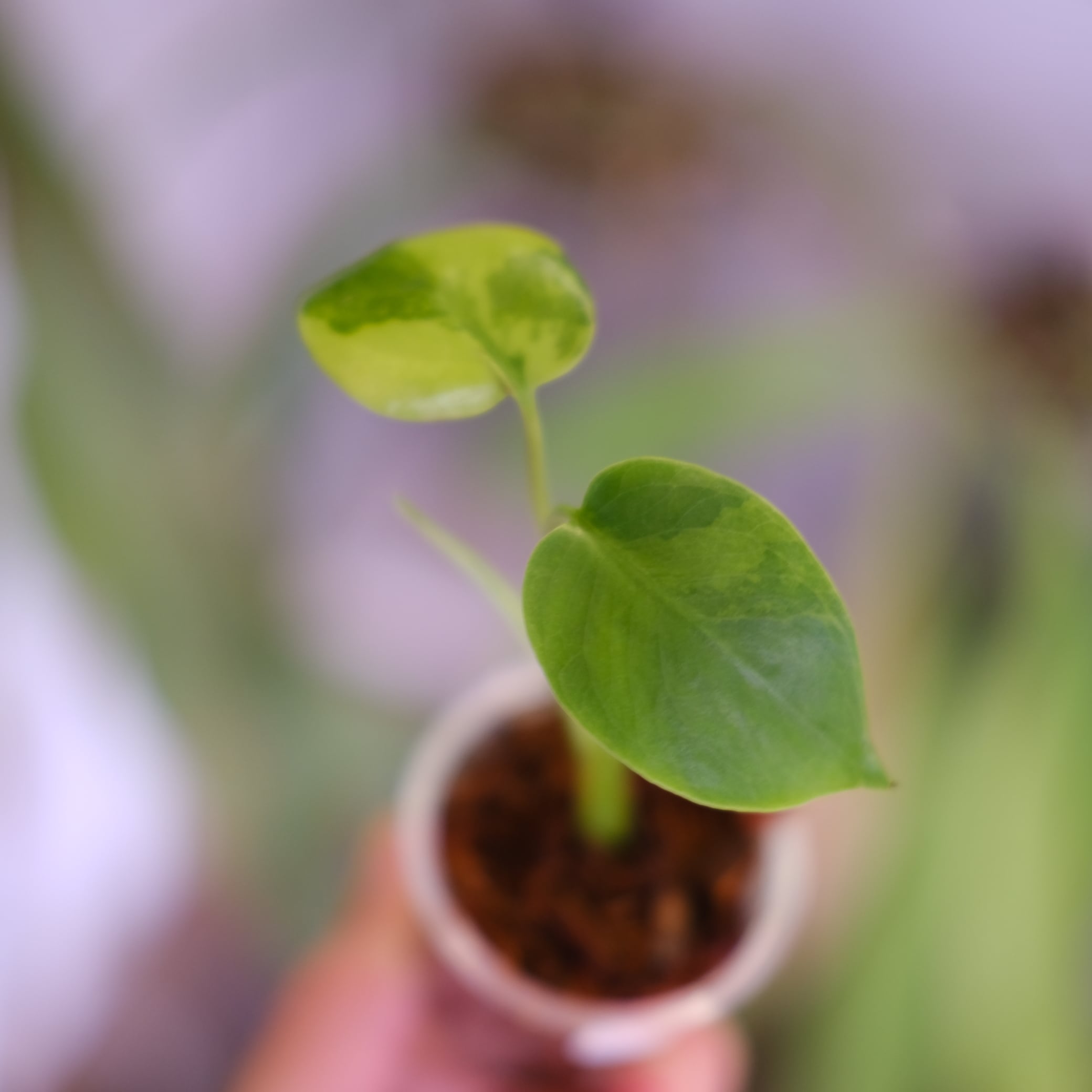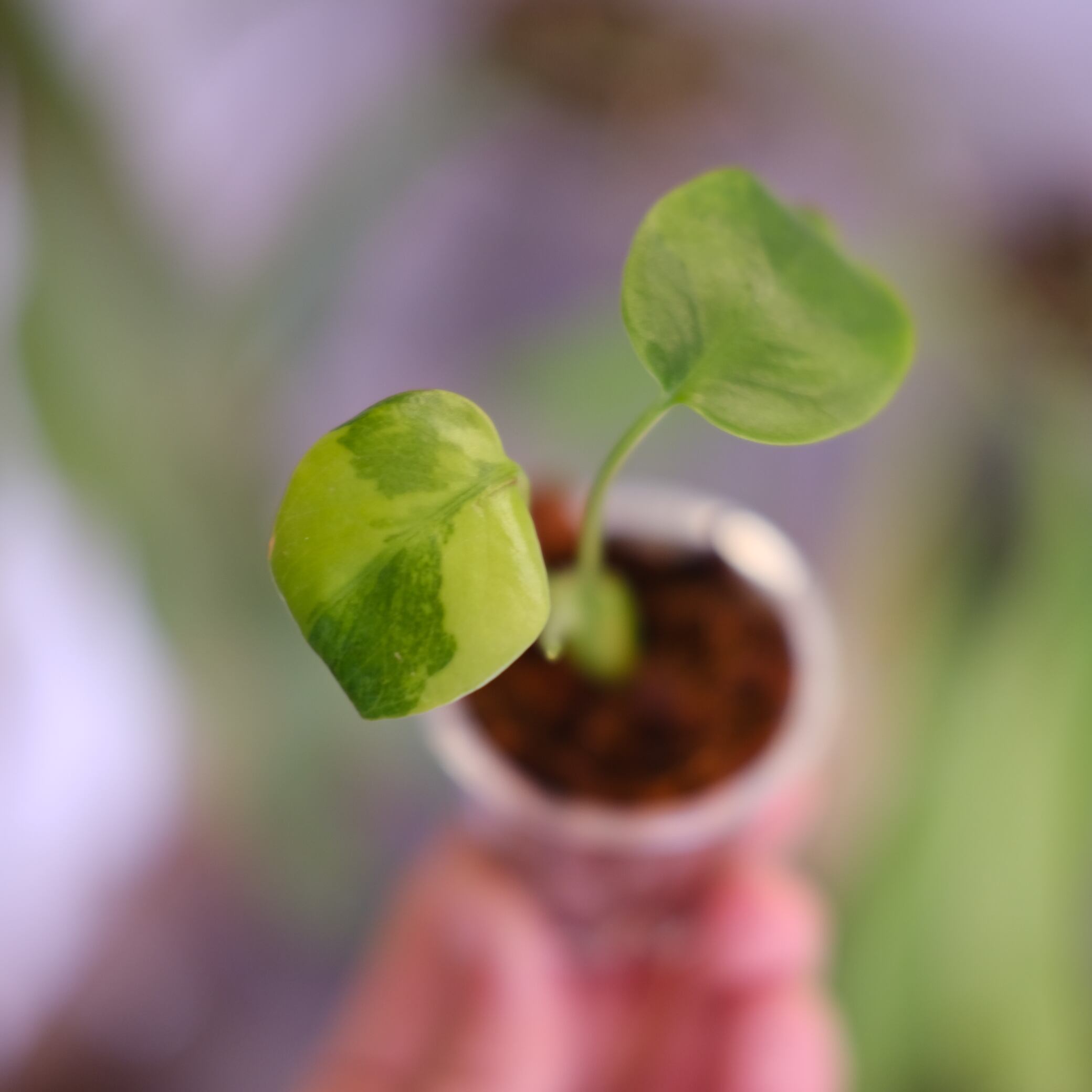 green on green は、緑斑が不規則に入る系統の総称的な呼び名で、完全固定品種ではありません。そのため、葉ごとに模様の出方が異なり、斑が強く出る葉と控えめな葉が混在する場合があります。白斑系に比べて葉焼け耐性はやや高いものの、斑部分は光に弱いため、直射日光は避けた管理が適しています。
