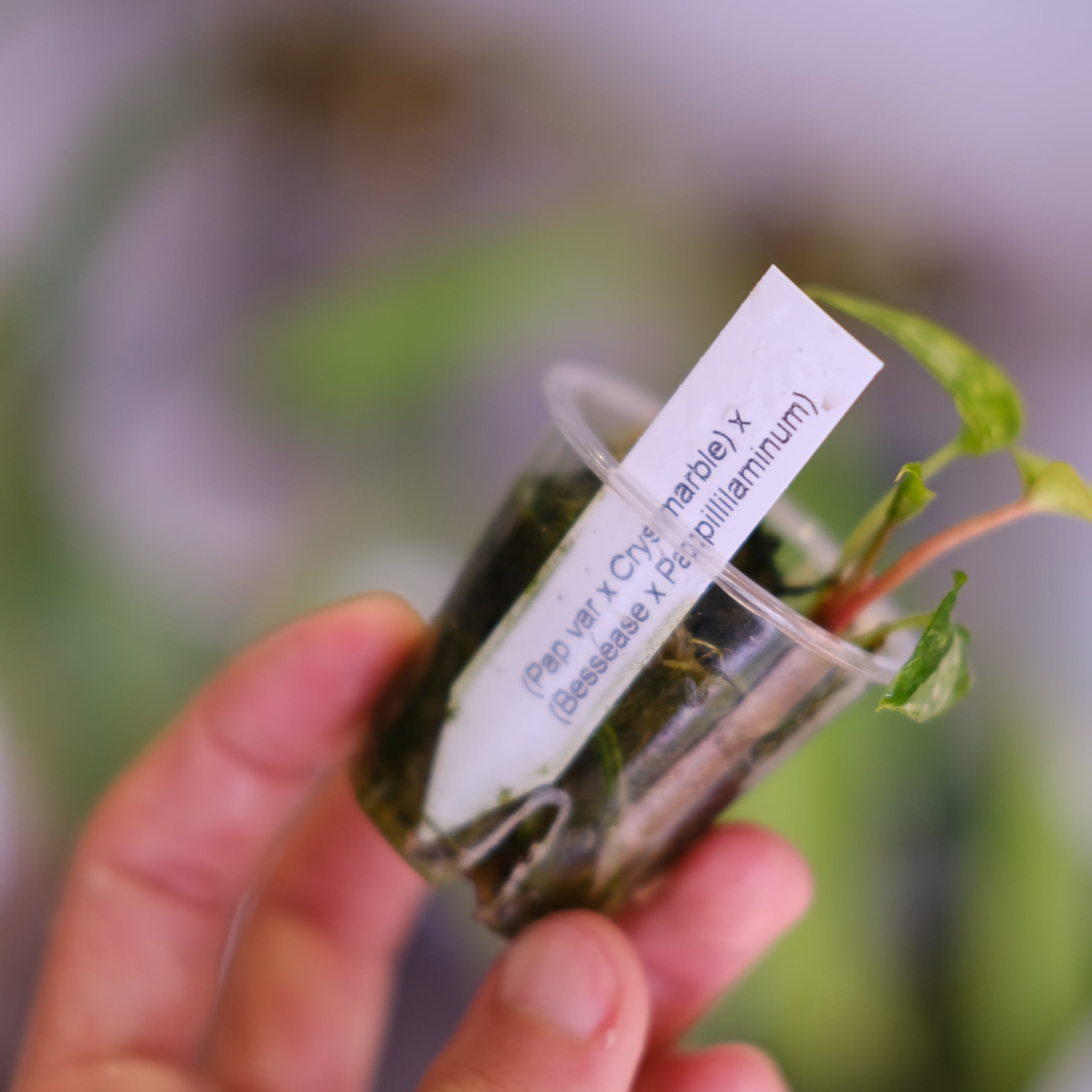 父系の Besseae × Papililaminum は、葉身の骨格と耐性を補強する目的で組まれた交配で、葉脈が深く入りやすい傾向があります。