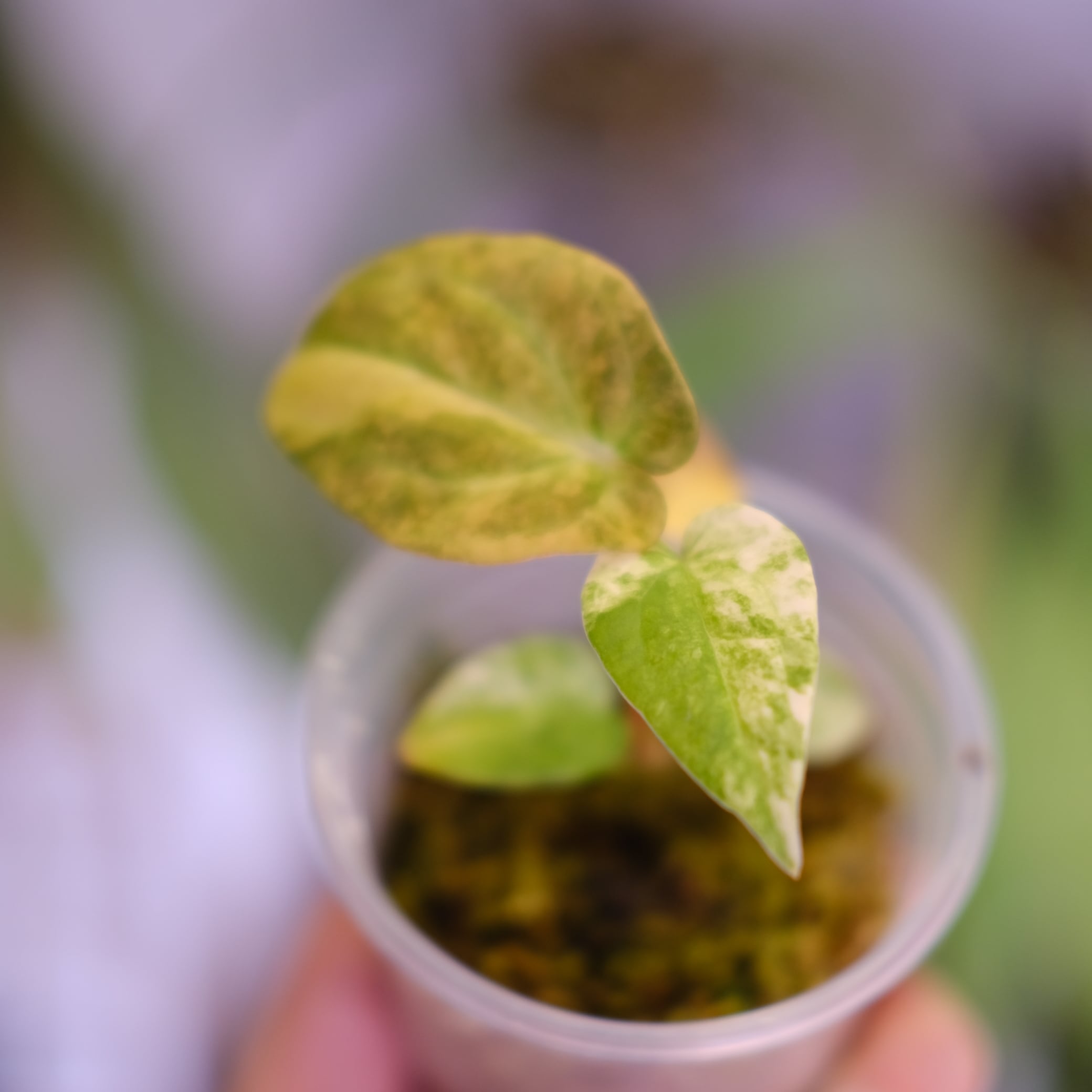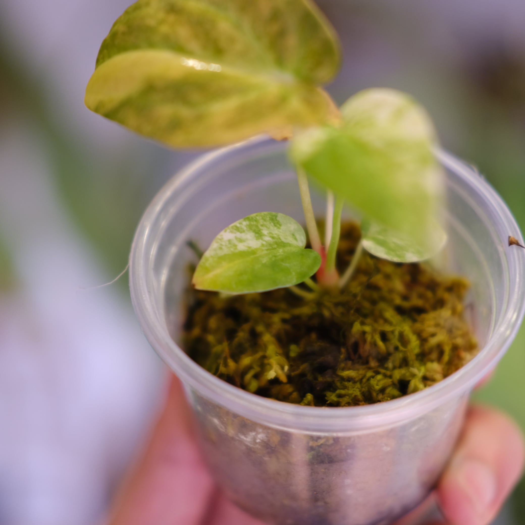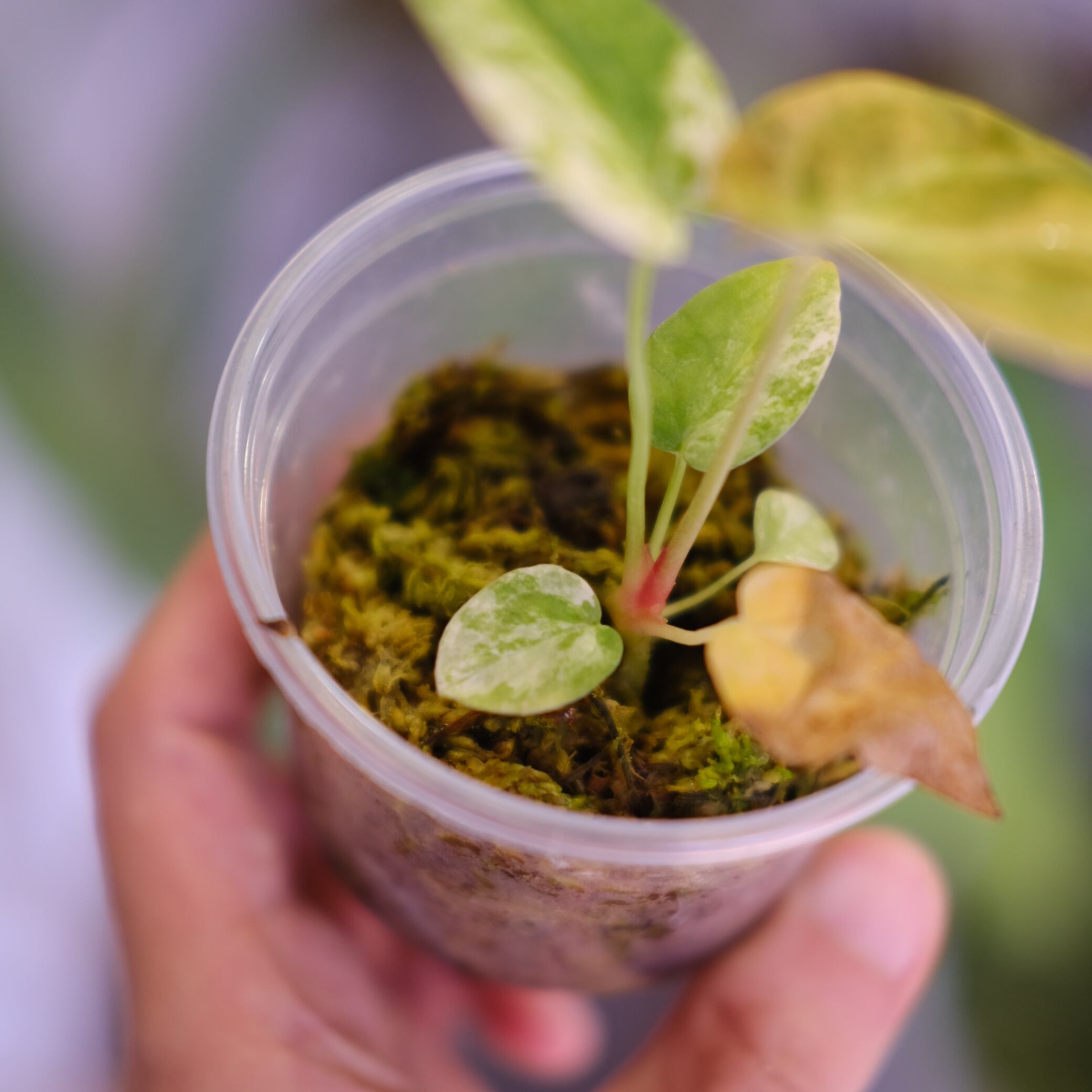 Red Spider は新葉時の赤色表現が特徴的な園芸系統で、葉脈や葉柄に色が乗りやすい点が評価されています。本交配では、両者の特性が中間的に現れ、形が崩れにくく、色の動きが加わった葉姿が期待されます。