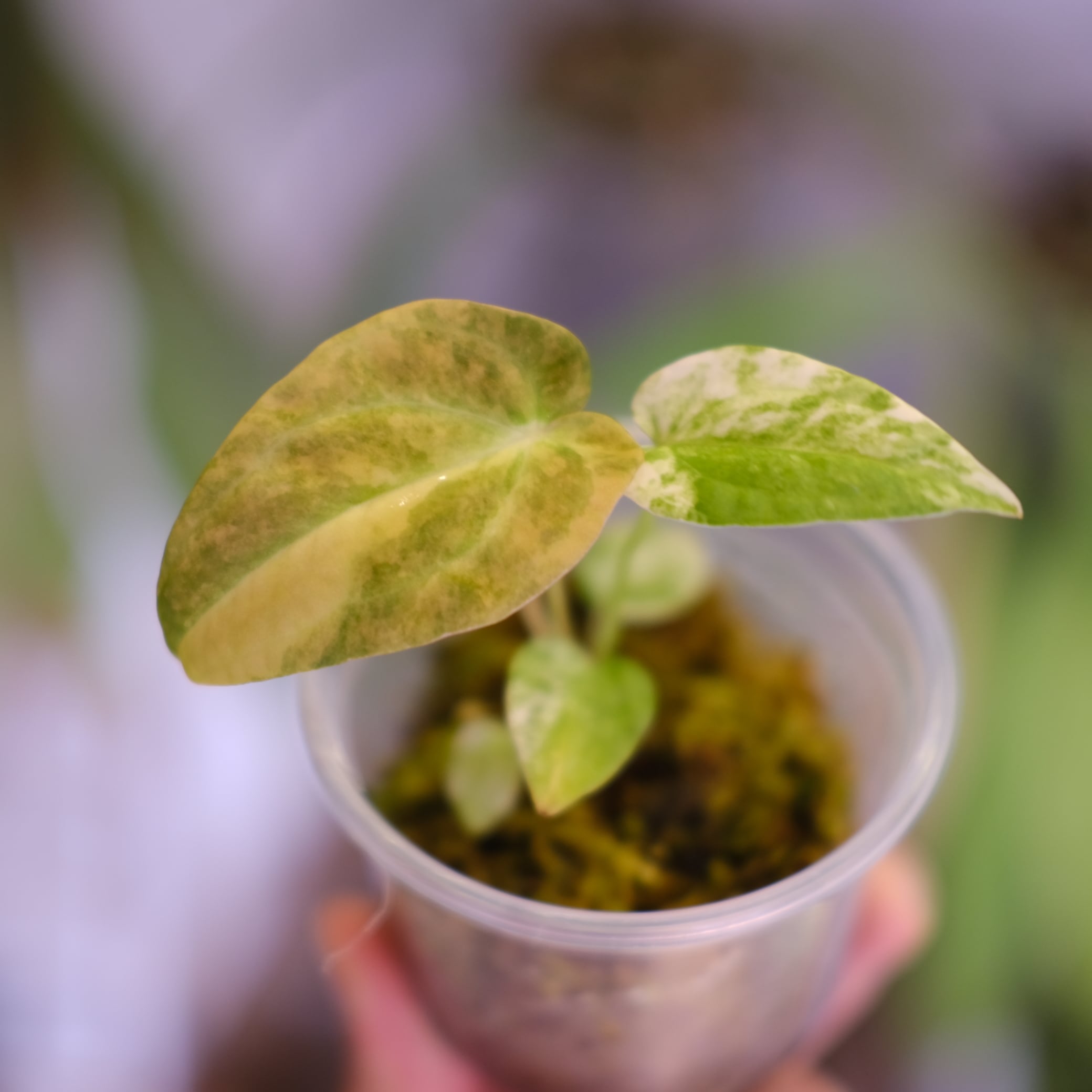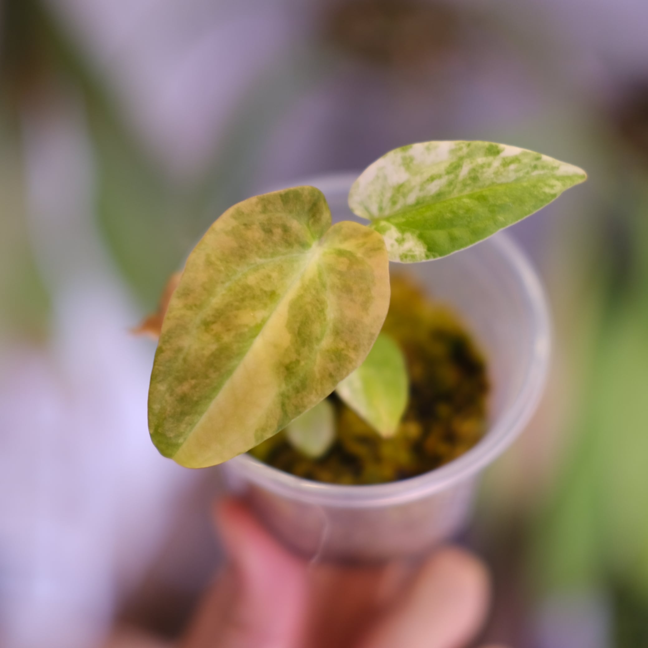 Anthurium papillilaminum var. “Australia version” × Anthurium ‘Red Spider’ は、葉形と質感の完成度を重視した papillilaminum 系統に、赤系の発色要素を持つ Red Spider を組み合わせた交配実生です。派手な色を固定的に狙うのではなく、新葉展開時の色変化を含めて評価する構成となっています。