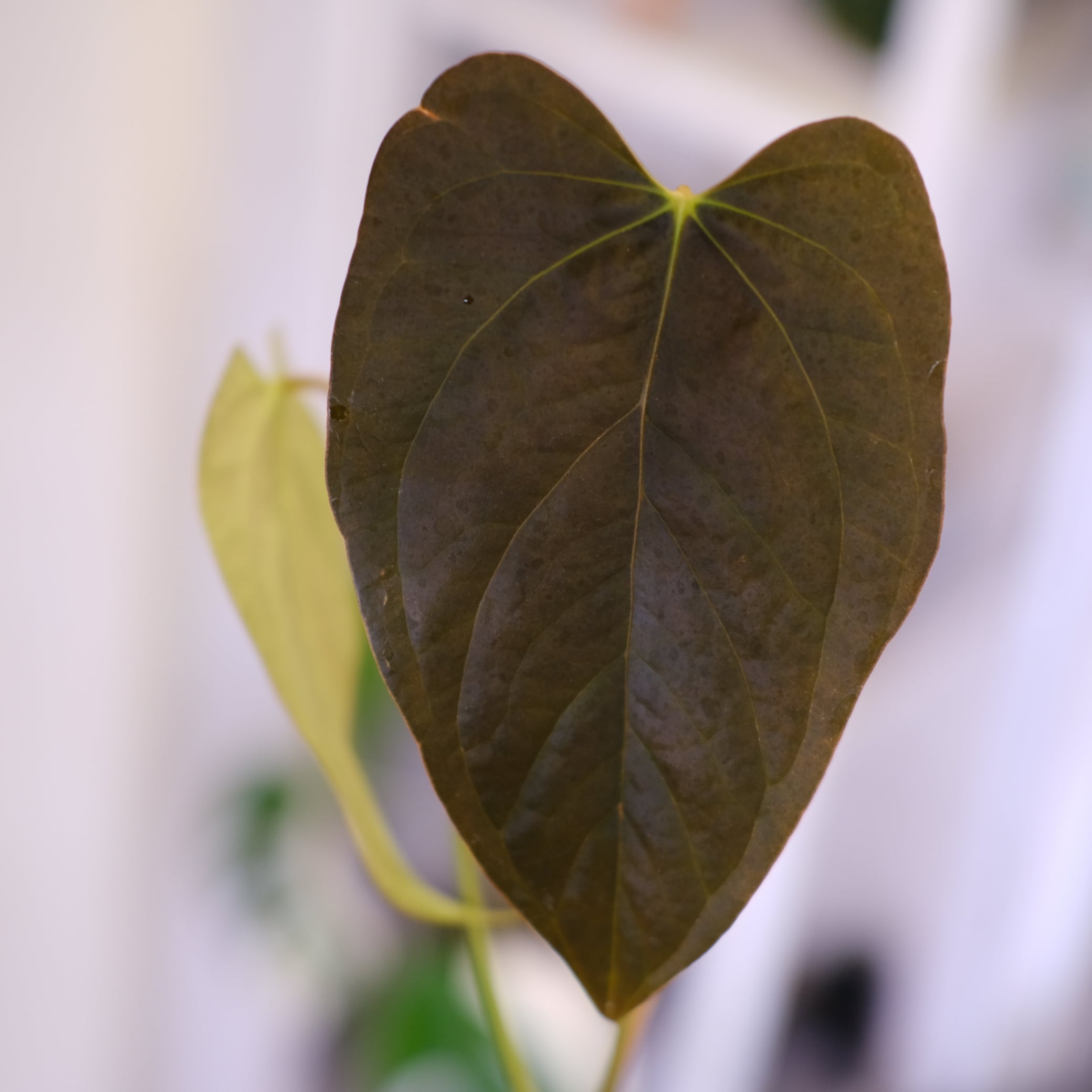 国内ではほとんど流通していない、希少なアンスリウムのハイブリッド品種、"アンスリウム クイーン オブ ハーツ"です。その美しい王侯貴族のような外観からワロクアーナムとアンスリウムの女王の座を争っているといわれています..?