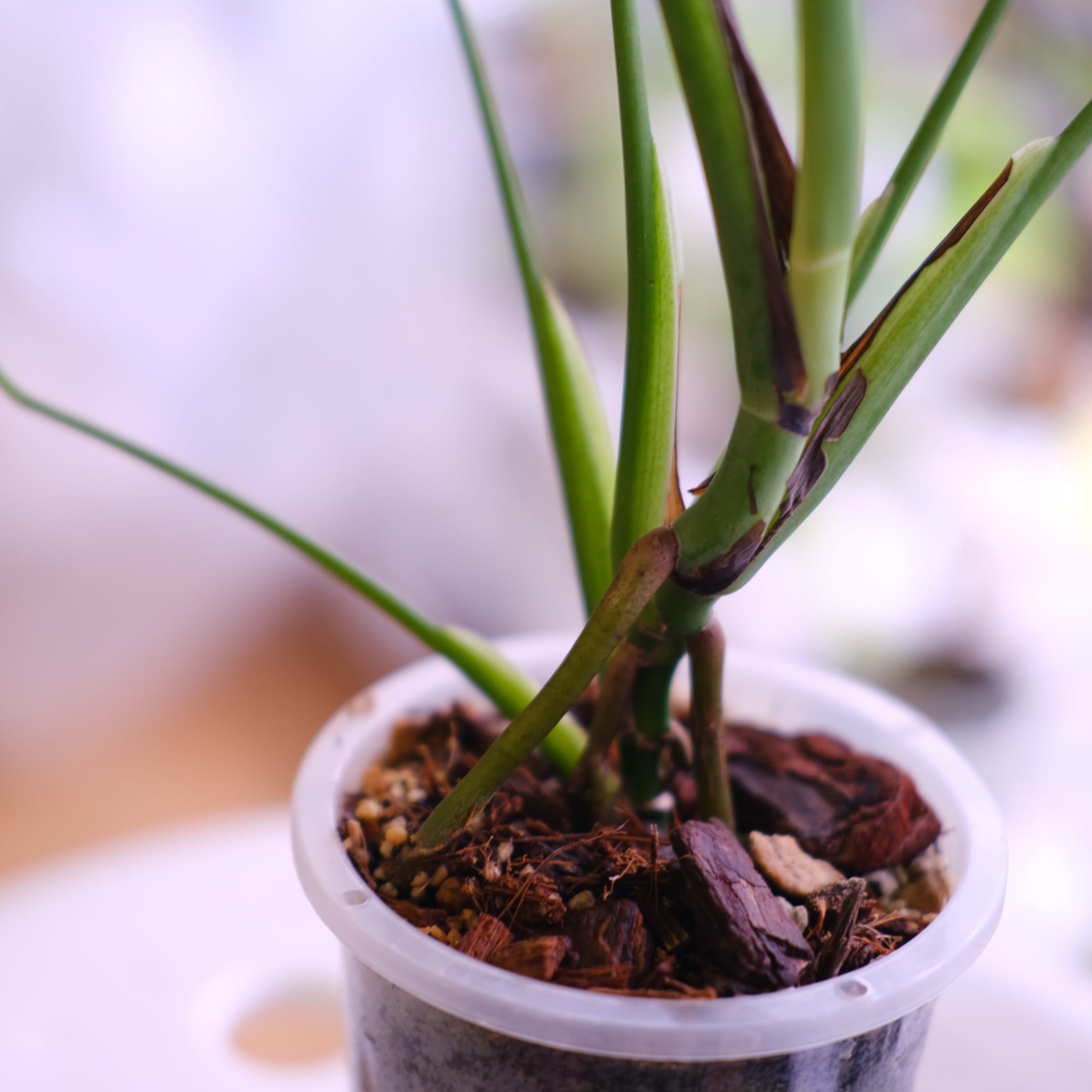 明るい間接光を好みます。直射日光に当てると葉が焼けてしまう可能性があるので注意してください。土が乾いたらたっぷりと水を与えますが、水はけを良くすることが重要です。また湿度は70%くらいが理想です。レアな品種ですが、生育方法自体は他のモンステラと変わらないので園芸初心者の方でもご安心ください。