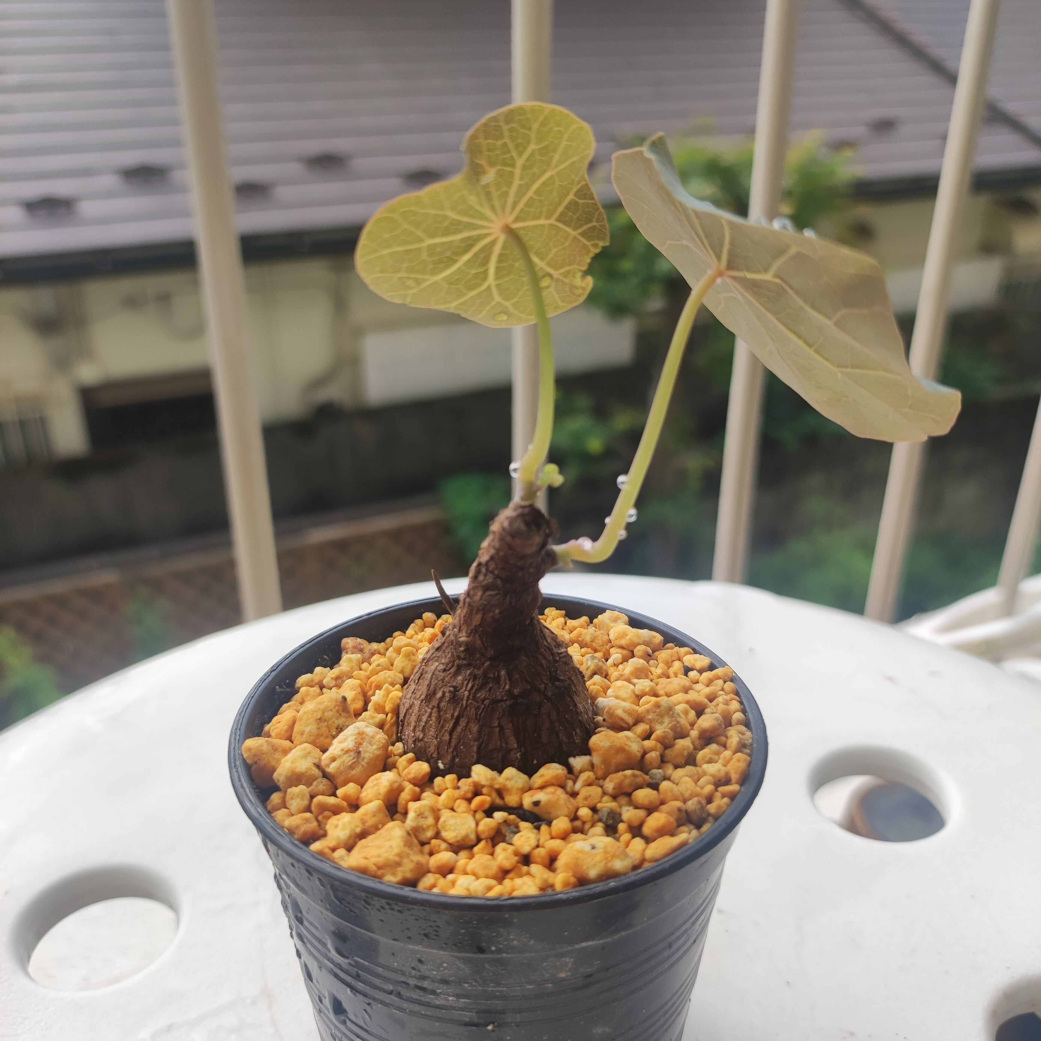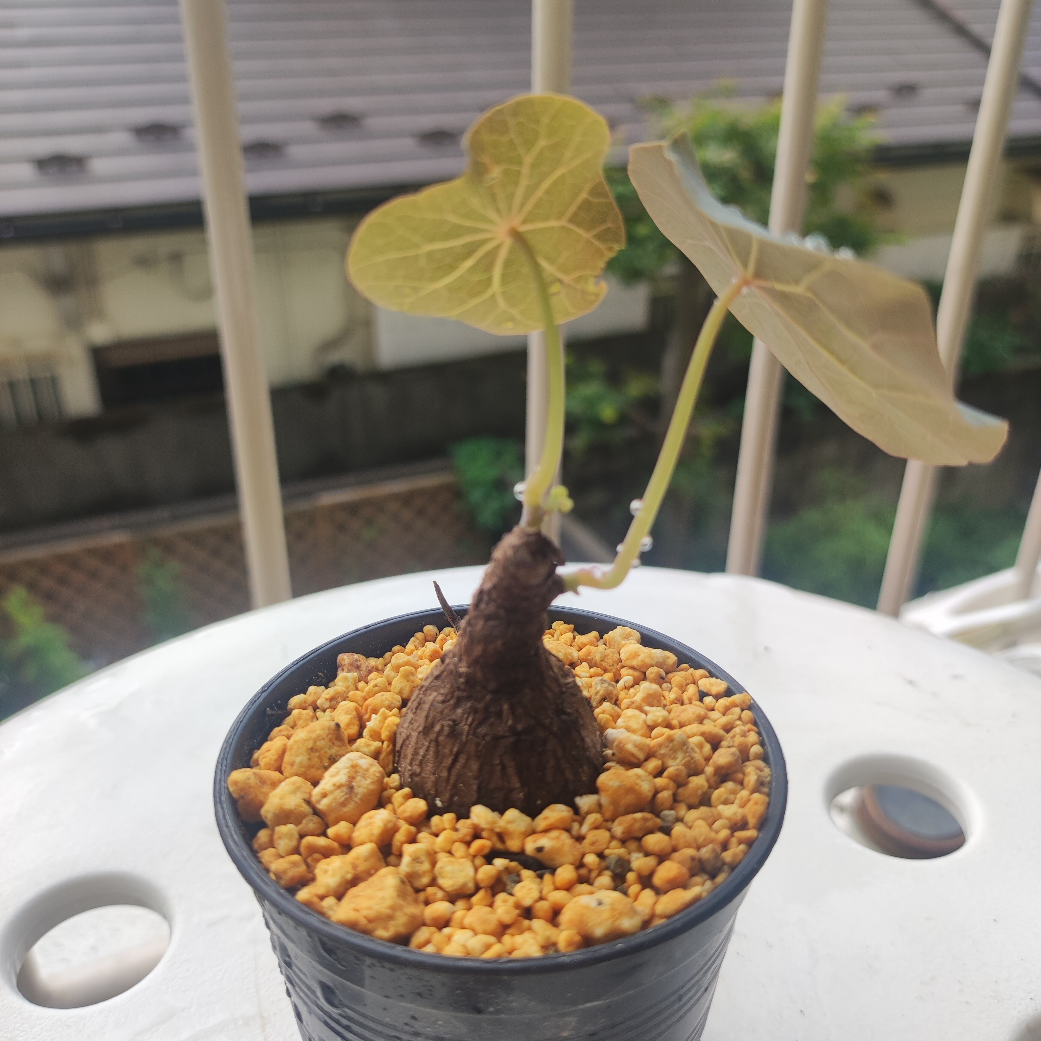 暖かく風通しの良い環境を好みます。水やりは他の塊根植物と同様に土の表面が乾いたらたっぷりとあげてください。冬は落葉しますが、また春になると新しい葉が展開するため毎年違った表情を楽しめます。尚、現在も発根管理中のため年内の植え替えはお控えください。