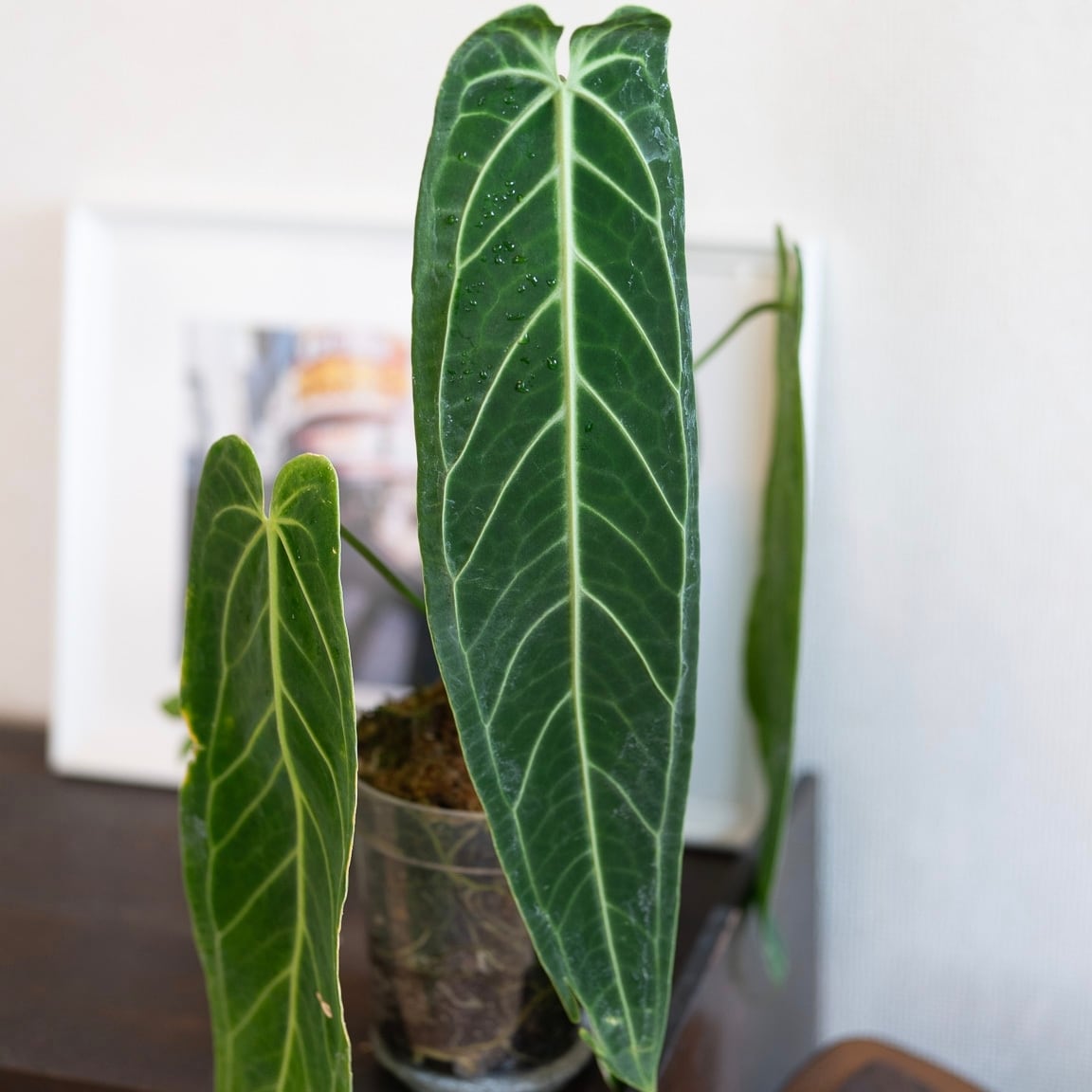 アンスリウムの女王と呼ばれるこの植物はダラっと下に垂れる葉がいかにも熱帯植物らしく、思わず触りたくなるビロード調の葉っぱがたまらなく魅力的です。湿度管理が少し大変ですが、部屋の雰囲気をぐっと高めてくれますよ。