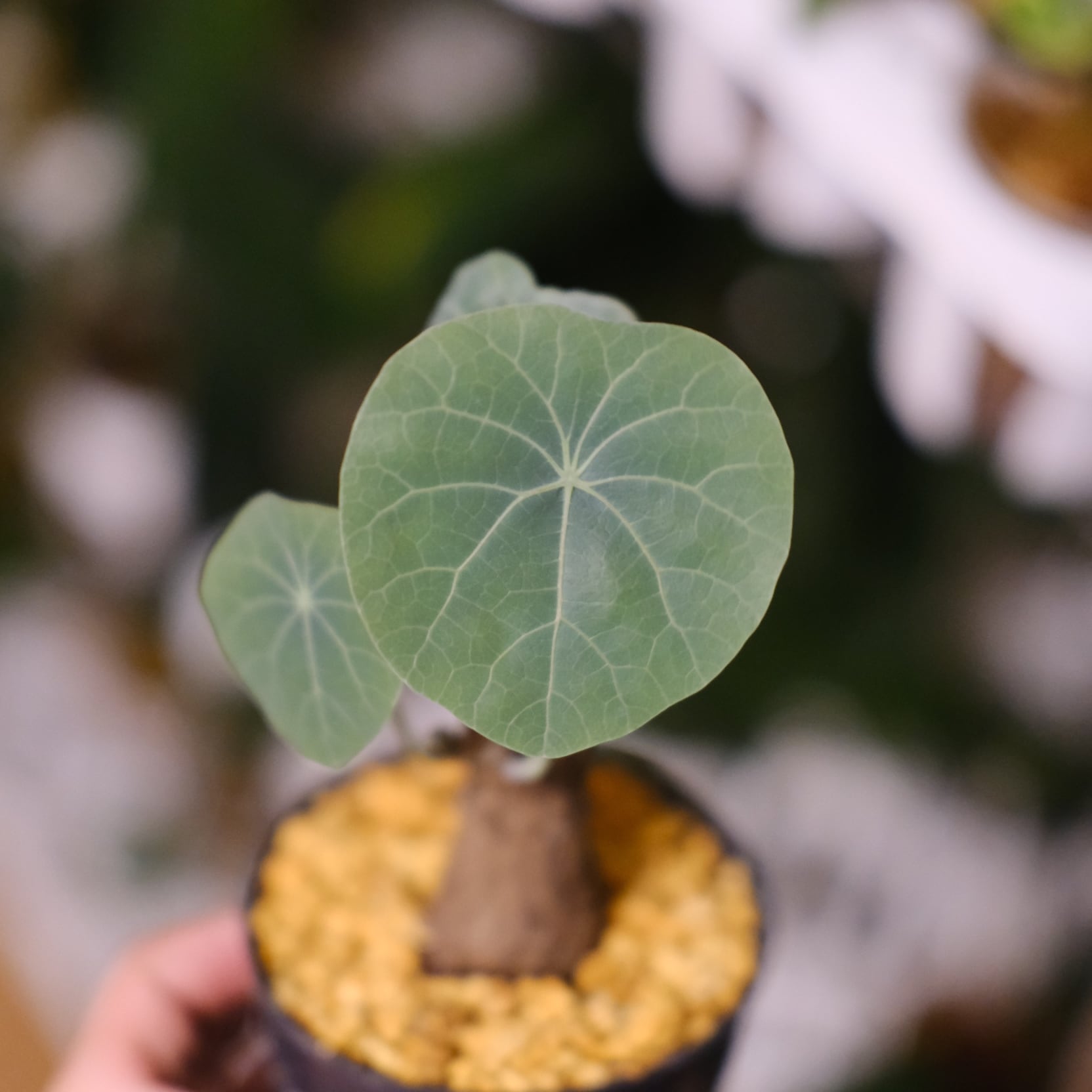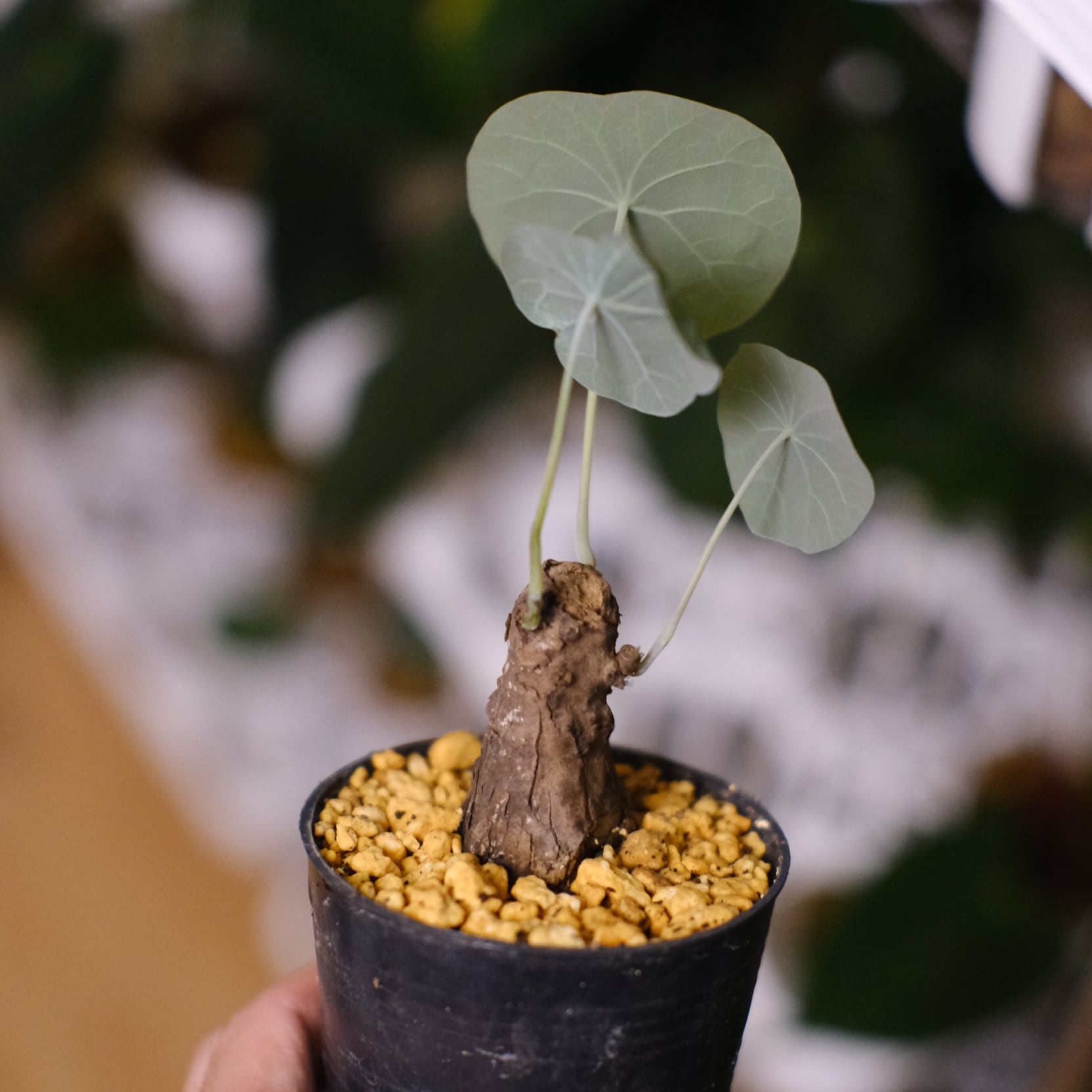 暖かく風通しの良い環境を好みます。水やりは他の塊根植物と同様に土の表面が乾いたらたっぷりとあげてください。冬は落葉しますが、また春になると新しい葉が展開するため毎年違った表情を楽しめます。尚、現在も発根管理中のため年内の植え替えはお控えください。