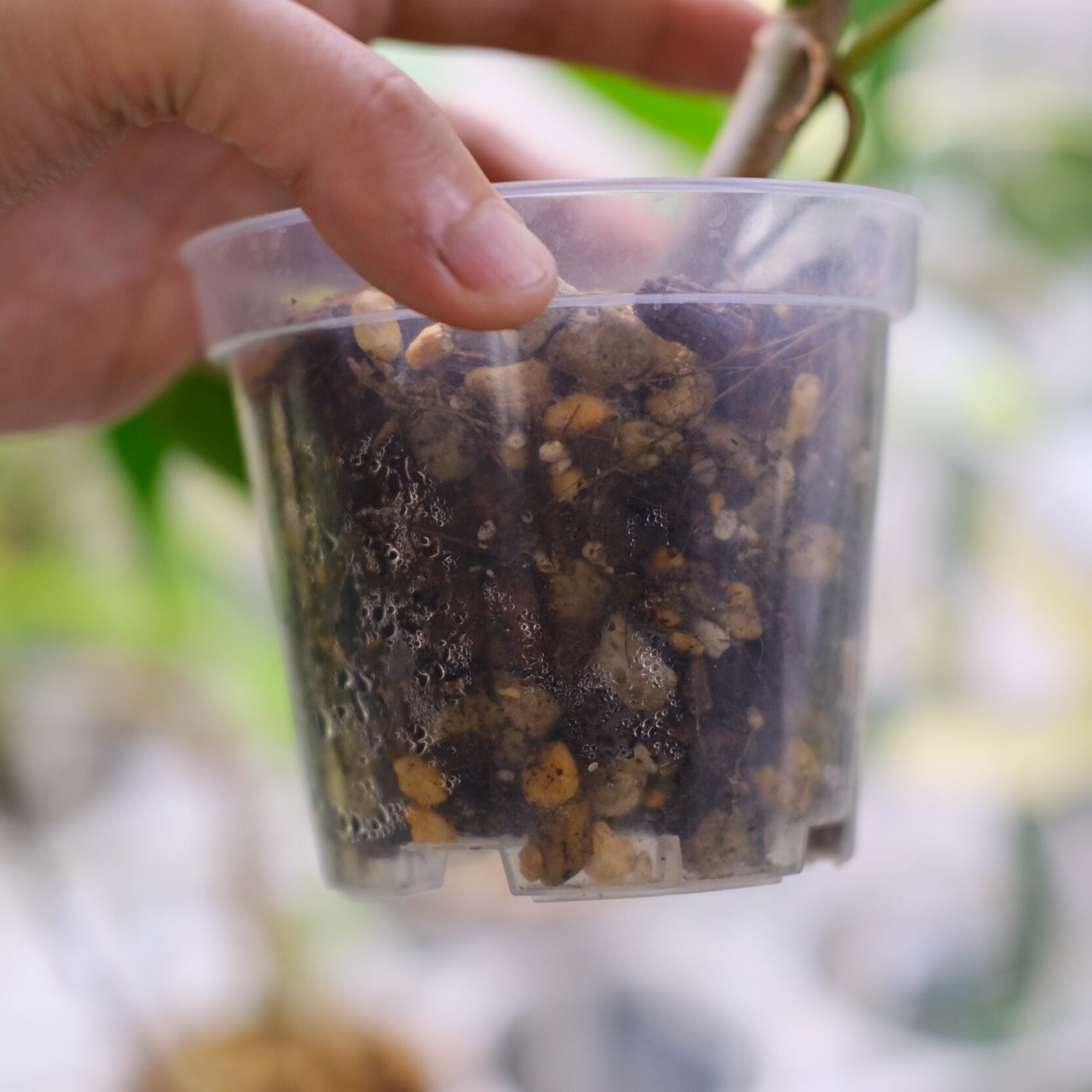鉢は成長した植物の根を観察できるプラスチック鉢となり、生育に適した【ココチップ+ひゅうが石+硬質鹿沼土+くん炭】を用土としています。