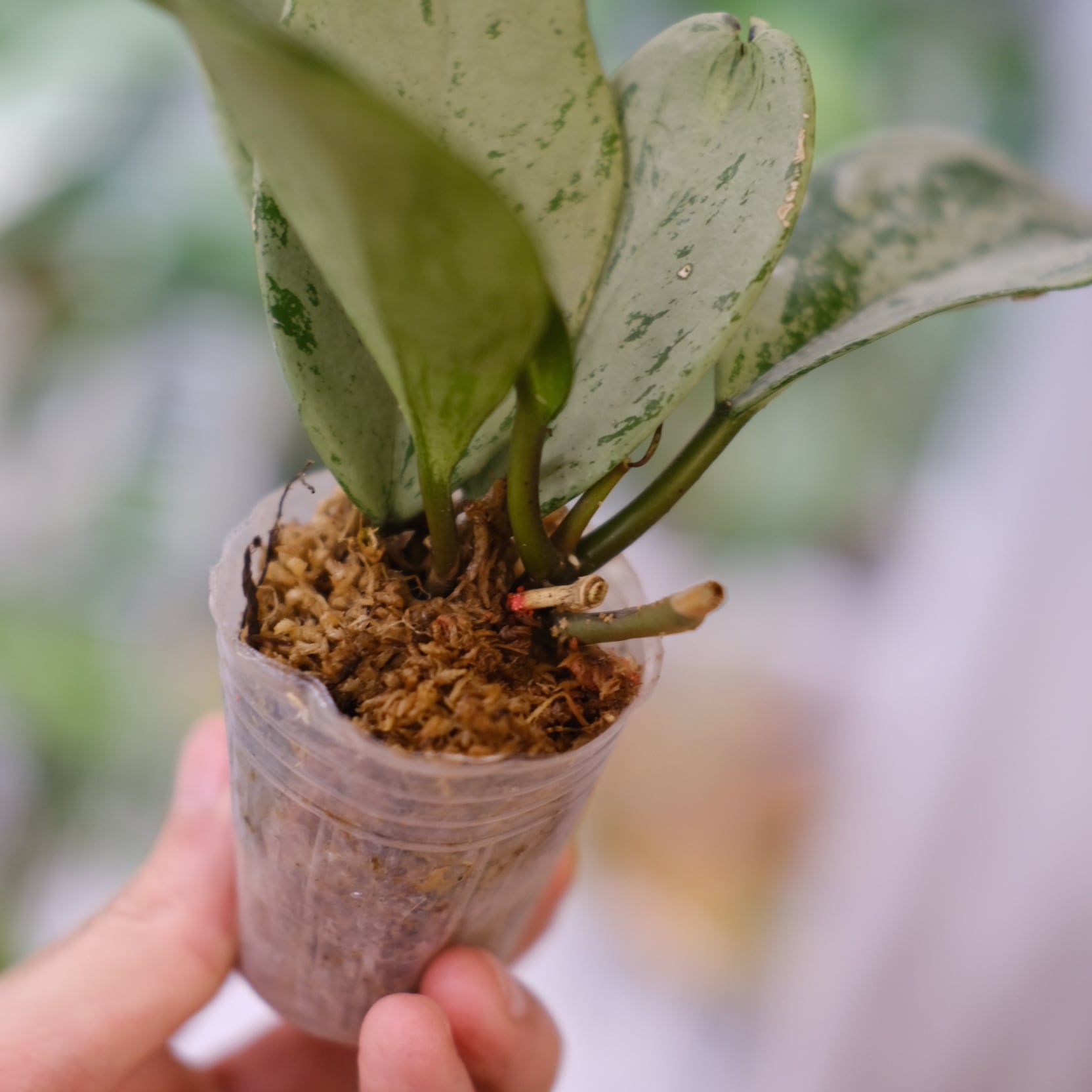 鉢は成長した植物の根を観察できるプラスチック鉢となり、ホヤの生育に適した【水苔】を用土としています。