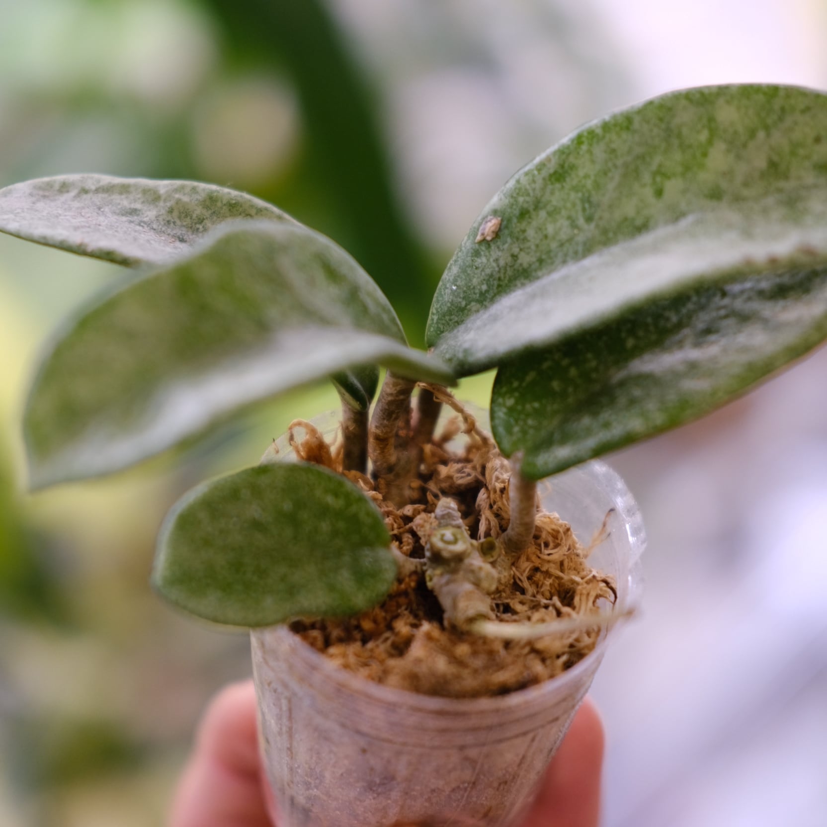 Hoya carnosa 'Nova Ghost' は、ホヤ属(Hoya)の中でも特に珍しい突然変異系の斑入り品種です。