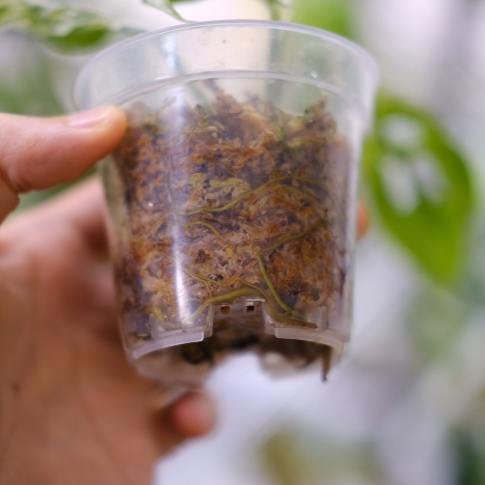 鉢は成長した植物の根を観察できるプラスチック鉢となり、生育に適した【水苔】を用土としています。