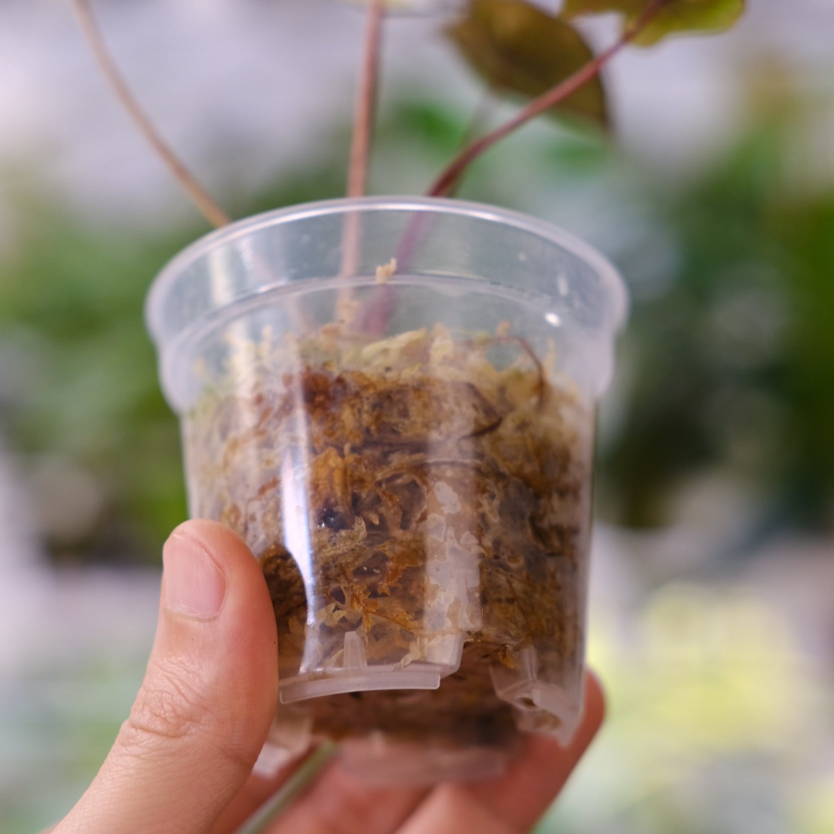 鉢は成長した植物の根を観察できるプラスチック鉢となり、生育に適した【水苔】を用土としています。