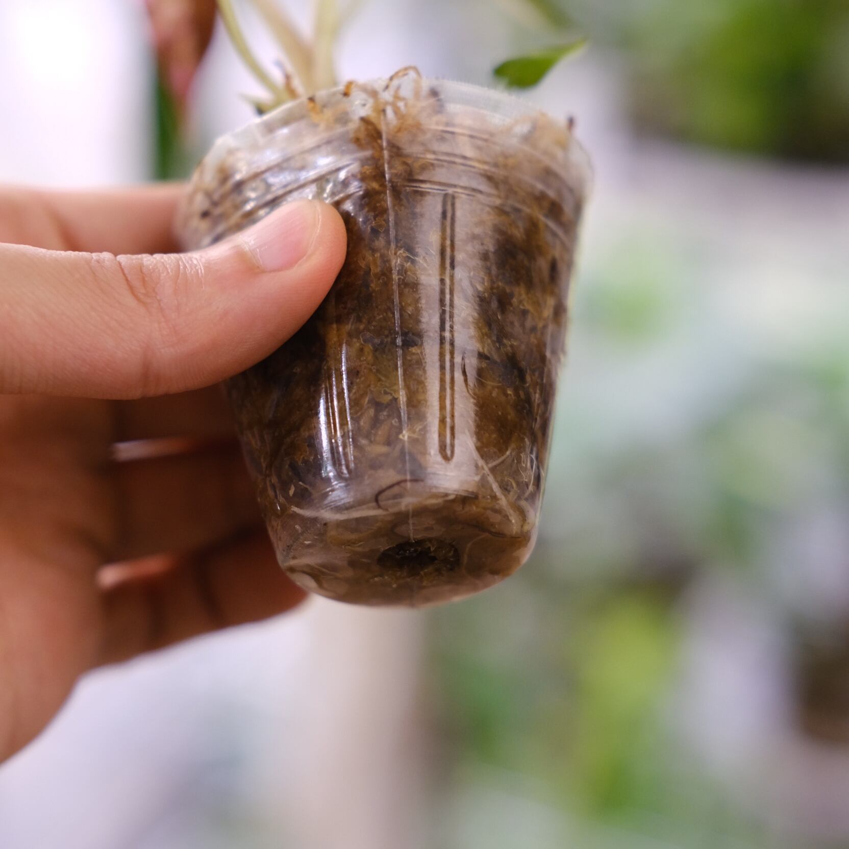 鉢は成長した植物の根を観察できるプラスチック鉢となり、生育に適した【水苔】を用土としています。