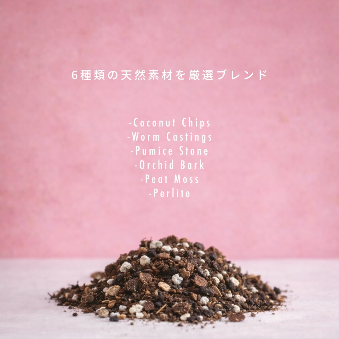 ココチップ、日向石、発酵樹皮、ミミズ堆肥など、植物の生育に最適なバランスで配合。